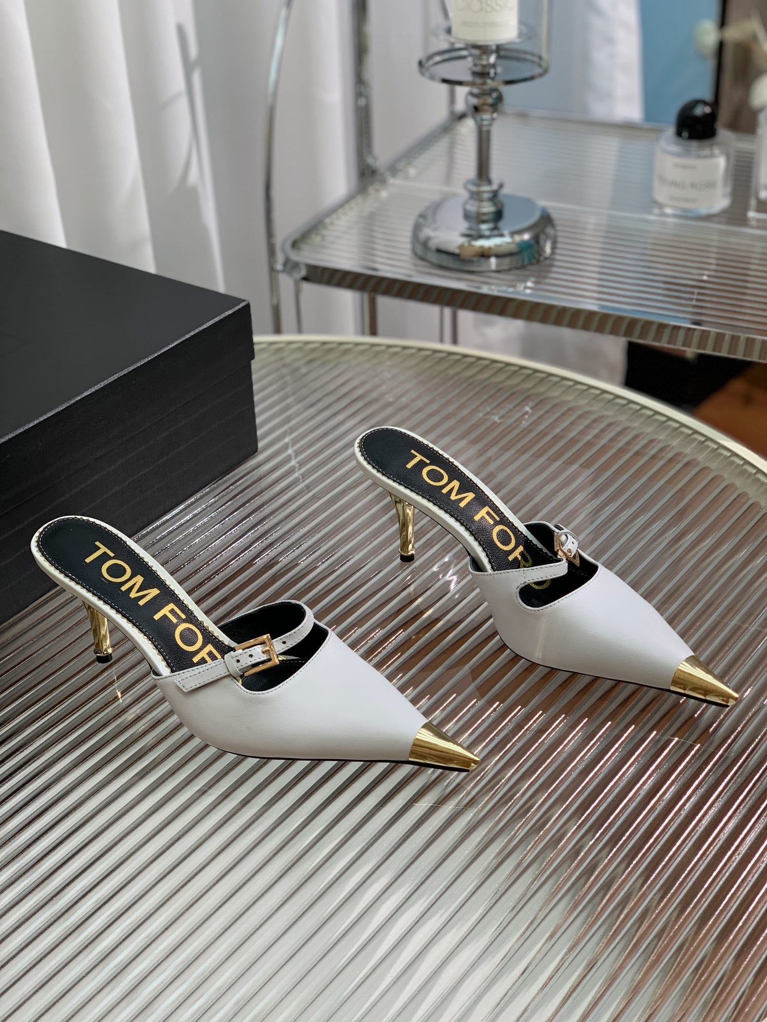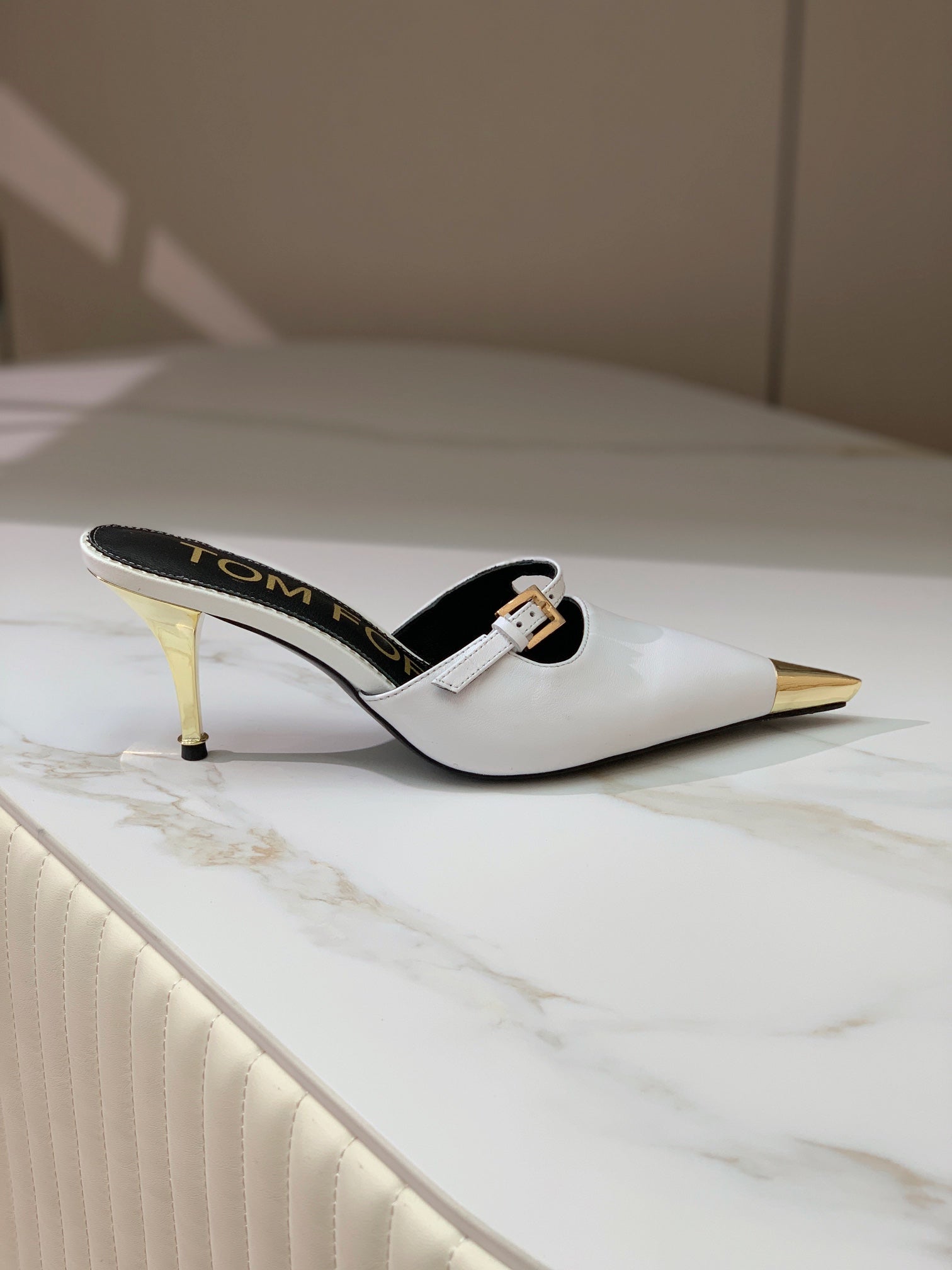 HIGH PUMP MULE 7 CM IN WHITE CALFSKIN