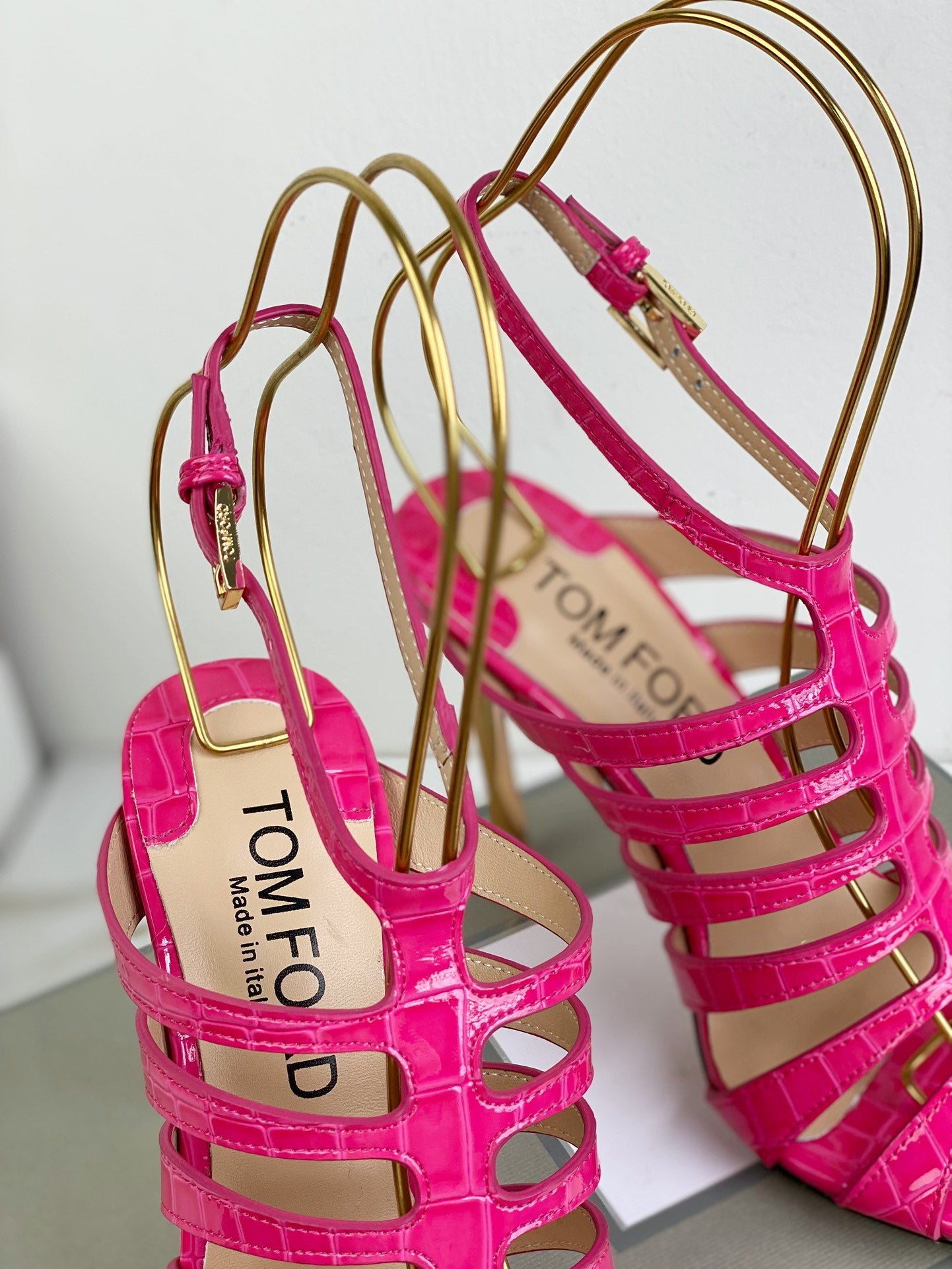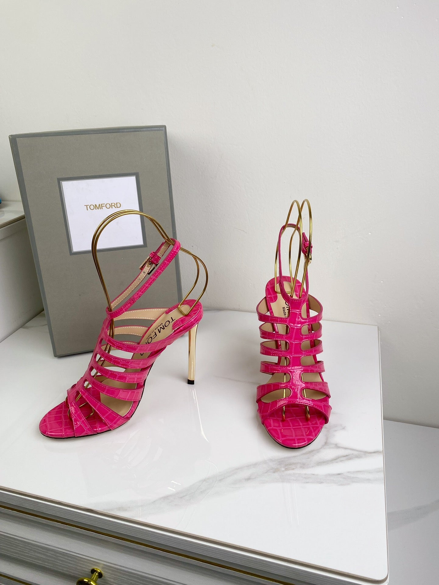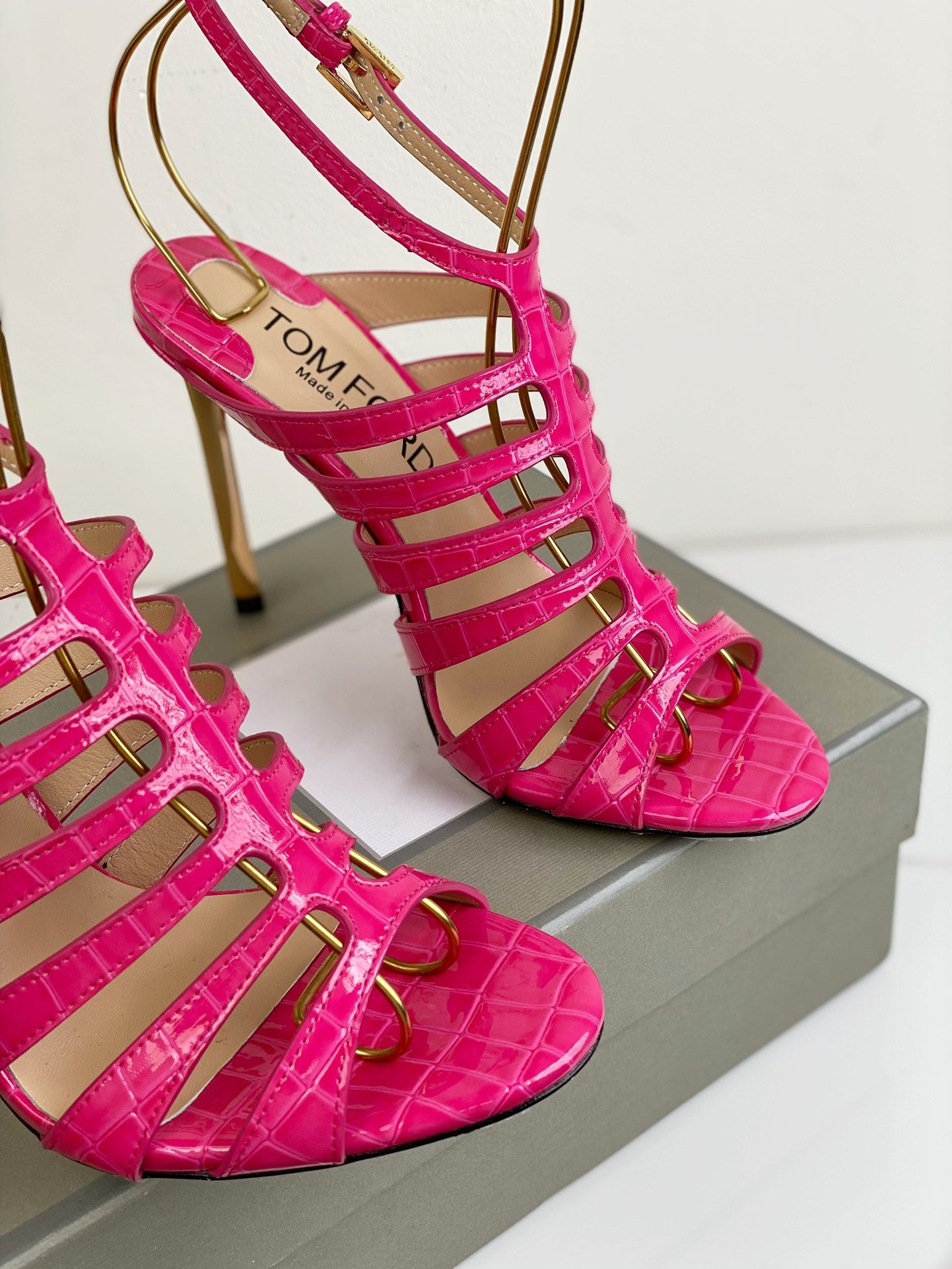 HIGH SANDAL 10 CM IN BRIGHT PINK CALFSKIN