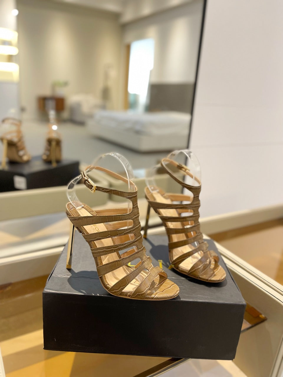 HIGH SANDAL 10 CM IN CIDER BROWN CALFSKIN
