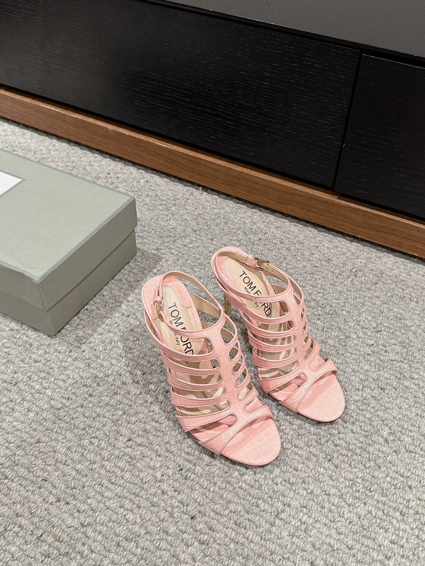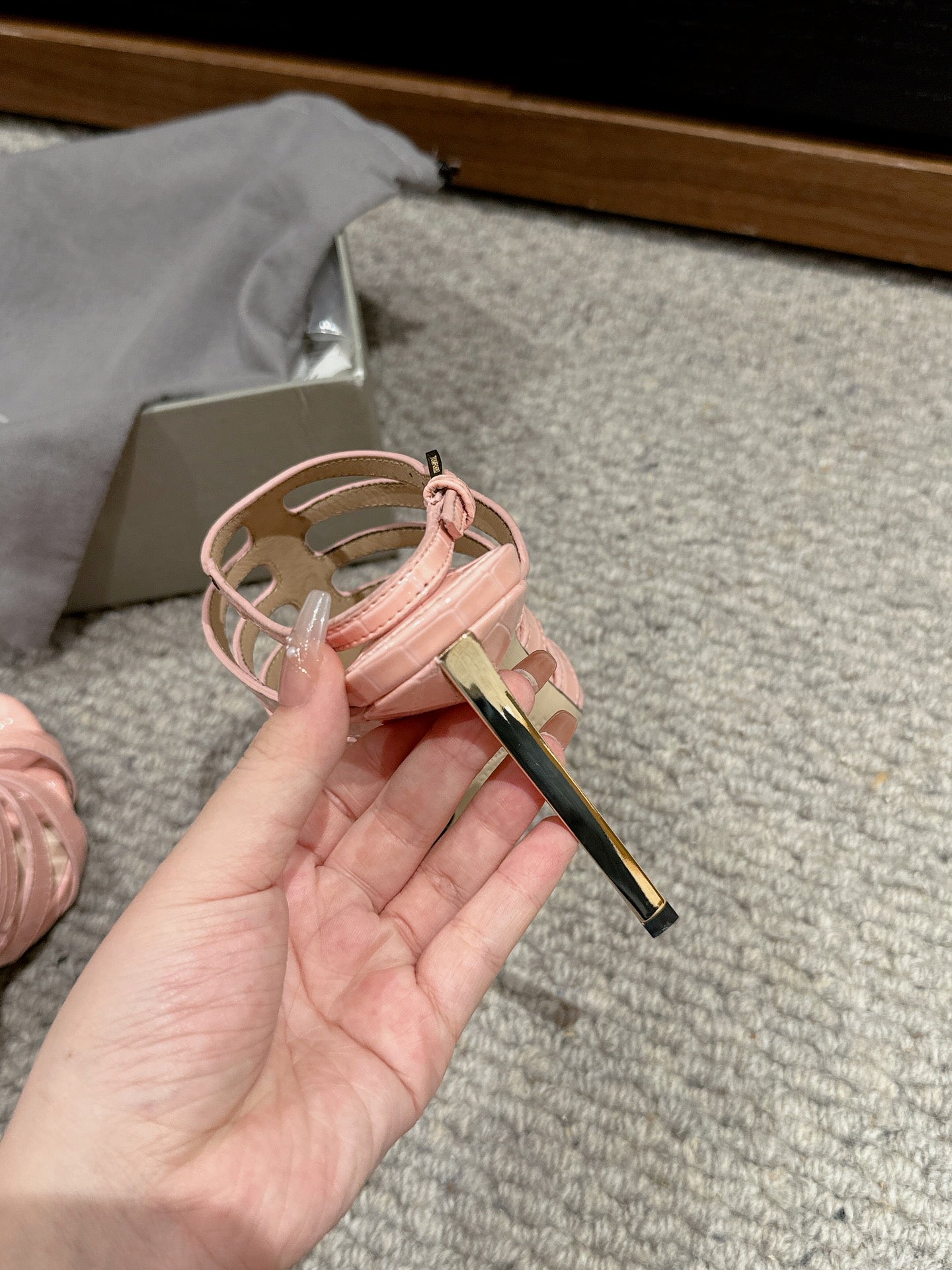 HIGH SANDAL 10 CM IN LIGHT PINK CALFSKIN