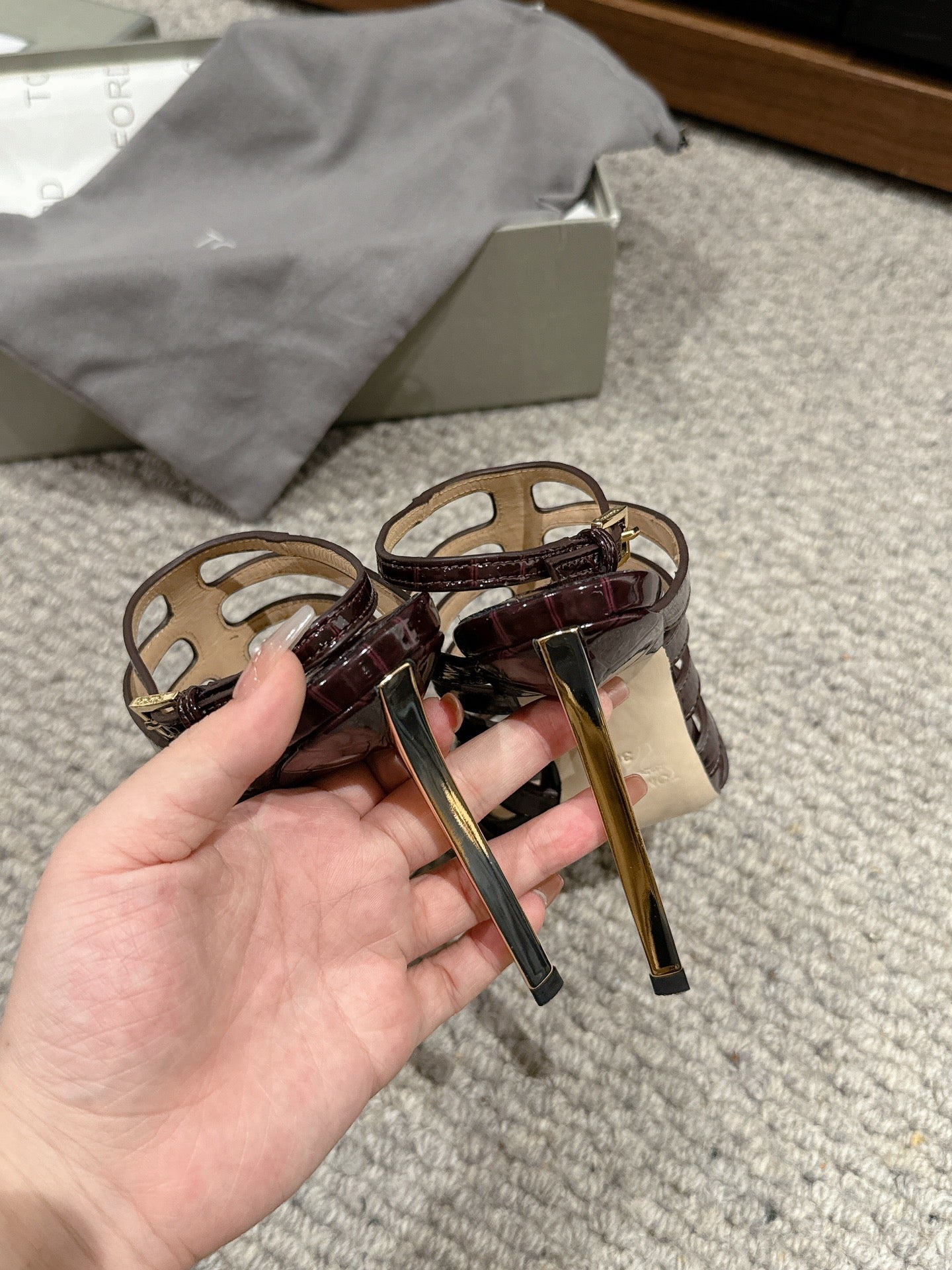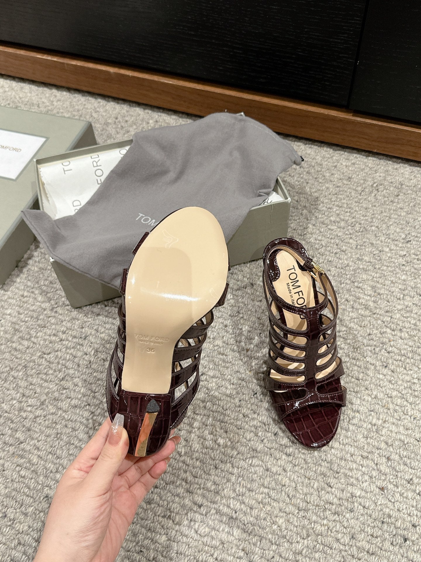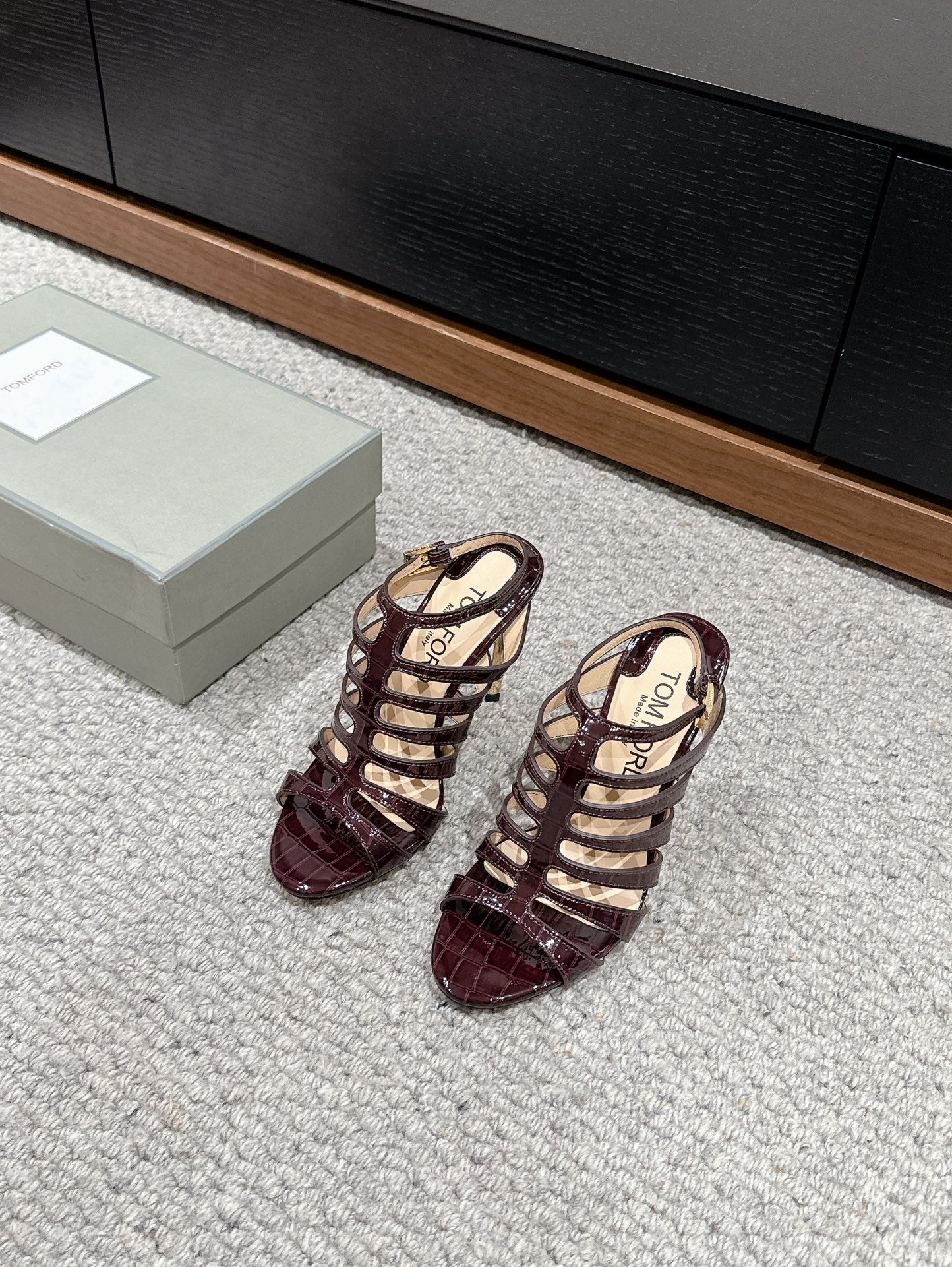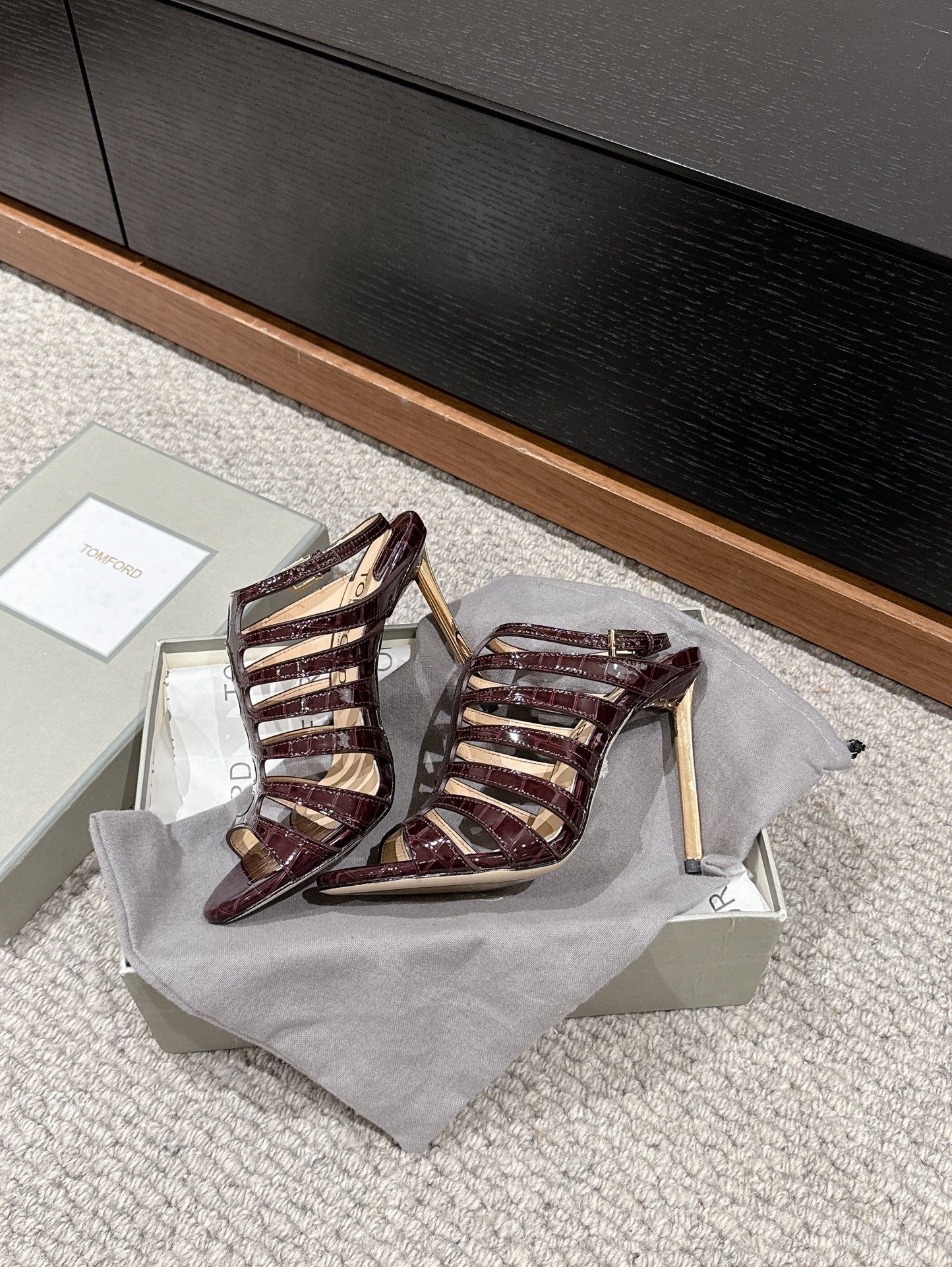 HIGH SANDAL 10 CM IN MAHOGANY RED CALFSKIN