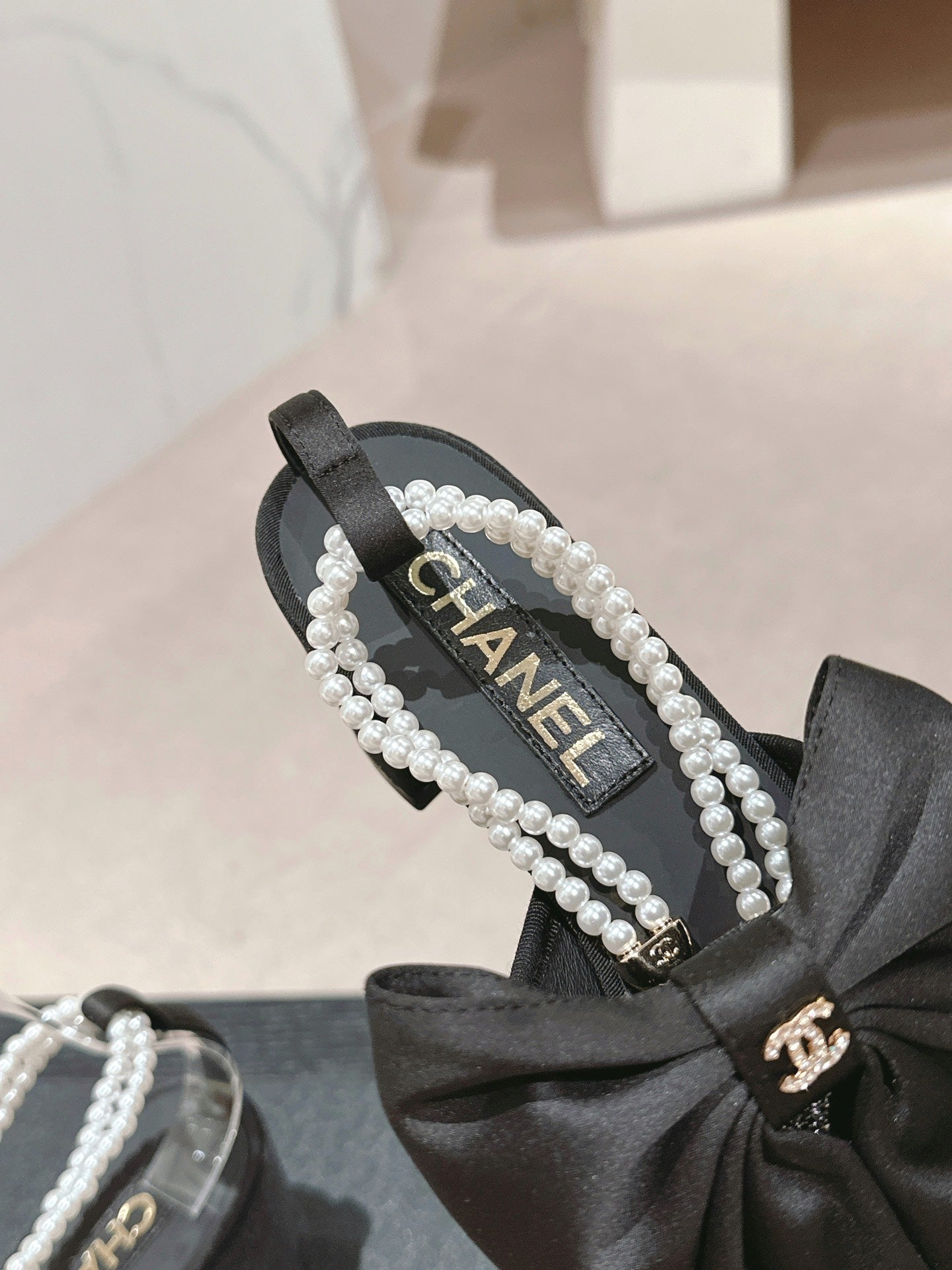 HIGH SANDAL WITH PEARL CHAIN BLACK LAMBSKIN WITH RHINESTONES