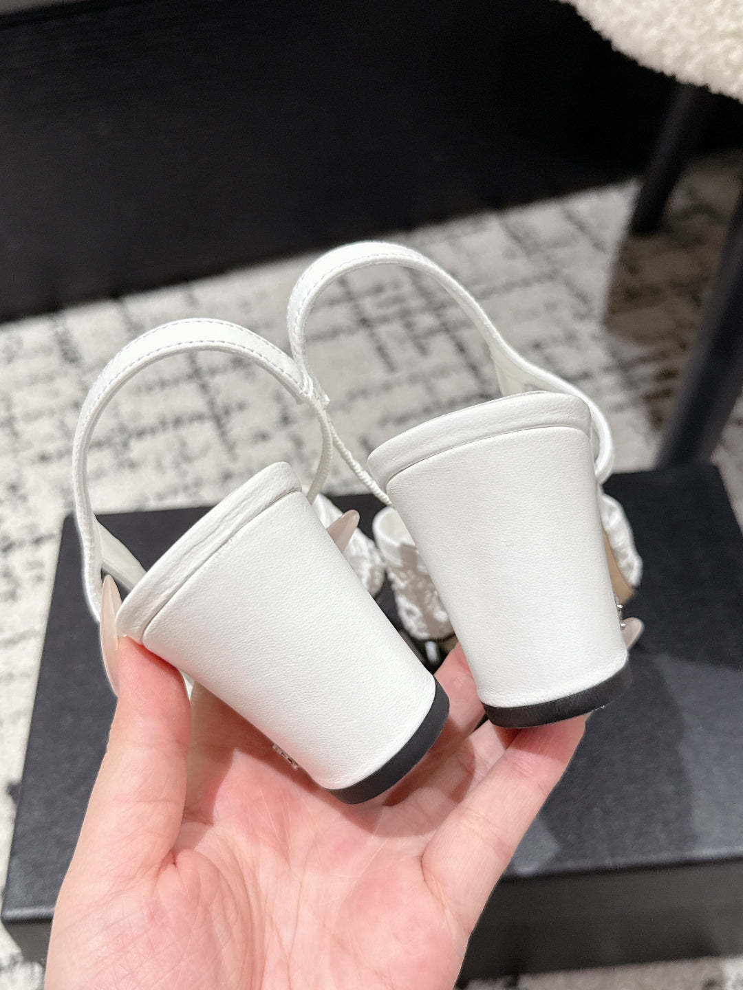 HIGH SLINGBACK 25S IN WHITE FABRIC AND BLACK CALFSKIN CANVAS