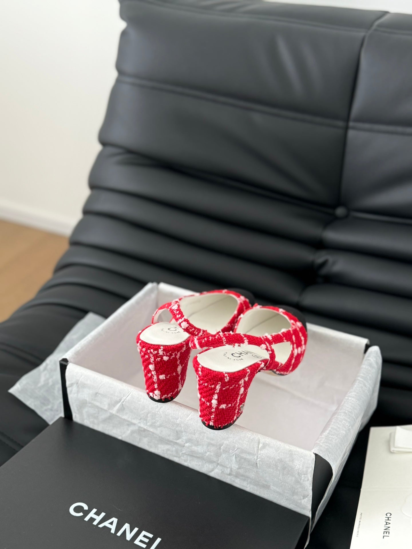 HIGH SLINGBACK IN CHERRY RED TWEED AND BLACK LAMBSKIN