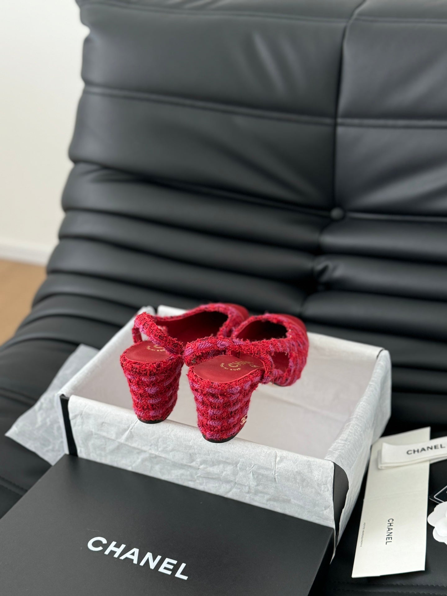 HIGH SLINGBACK IN RUBY RED TWEED AND LAMBSKIN