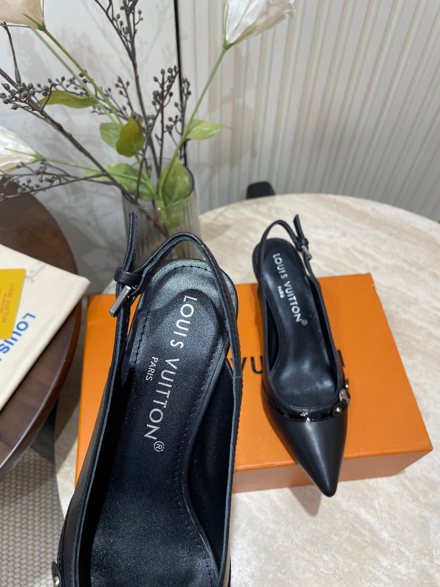 HIGH SLINGBACKS 5 CM IN BLACK CALFSKIN
