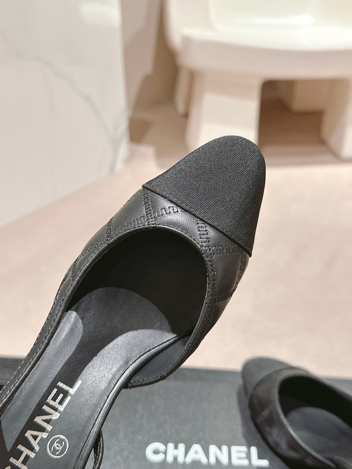 HIGH SLINGBACKS IN BLACK LAMBSKIN AND SATIN