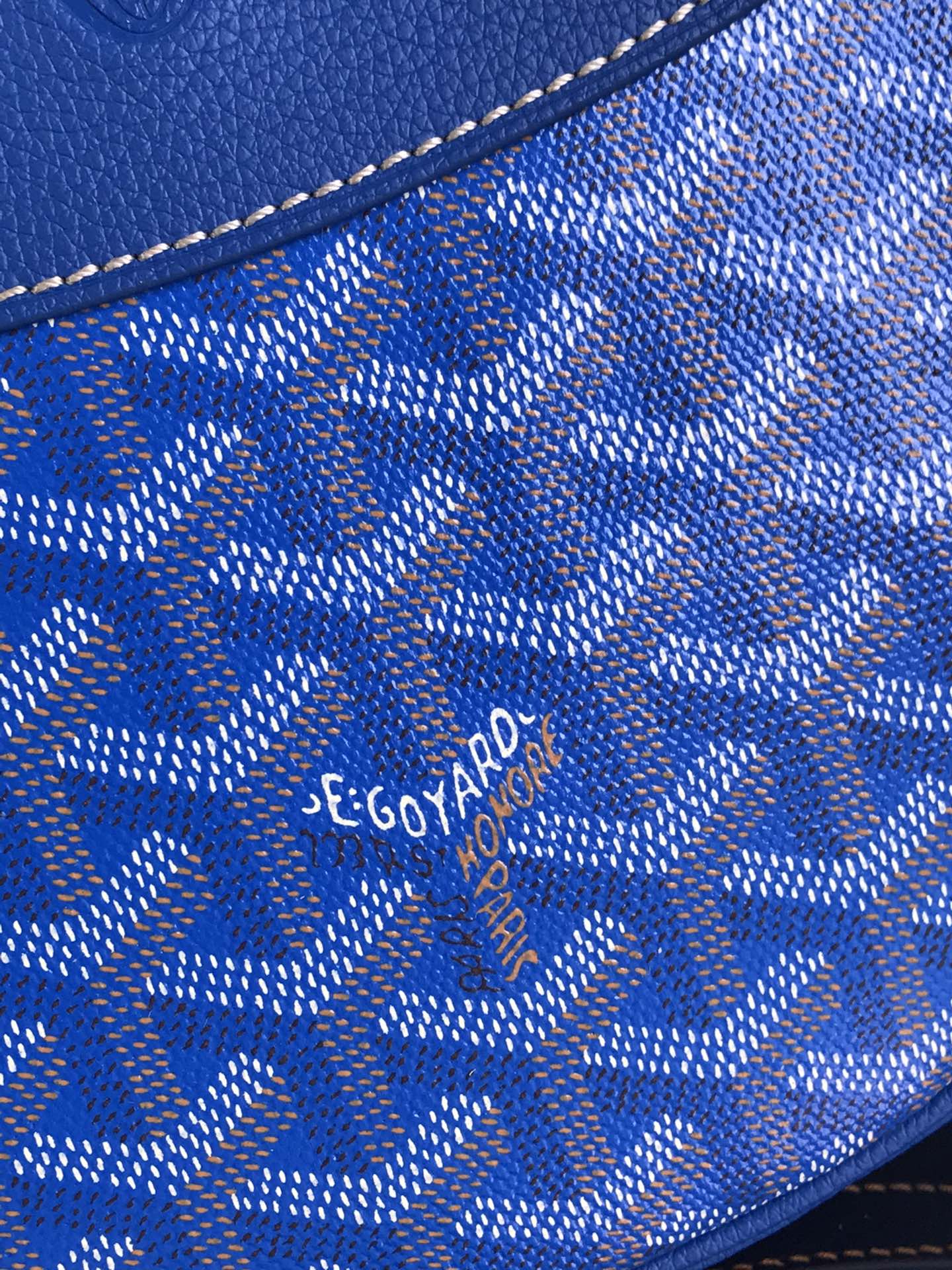 HIRONDELLE BAG 25 IN SAPPHIRE BLUE LAMBSKIN AND GOYARDINE CANVAS