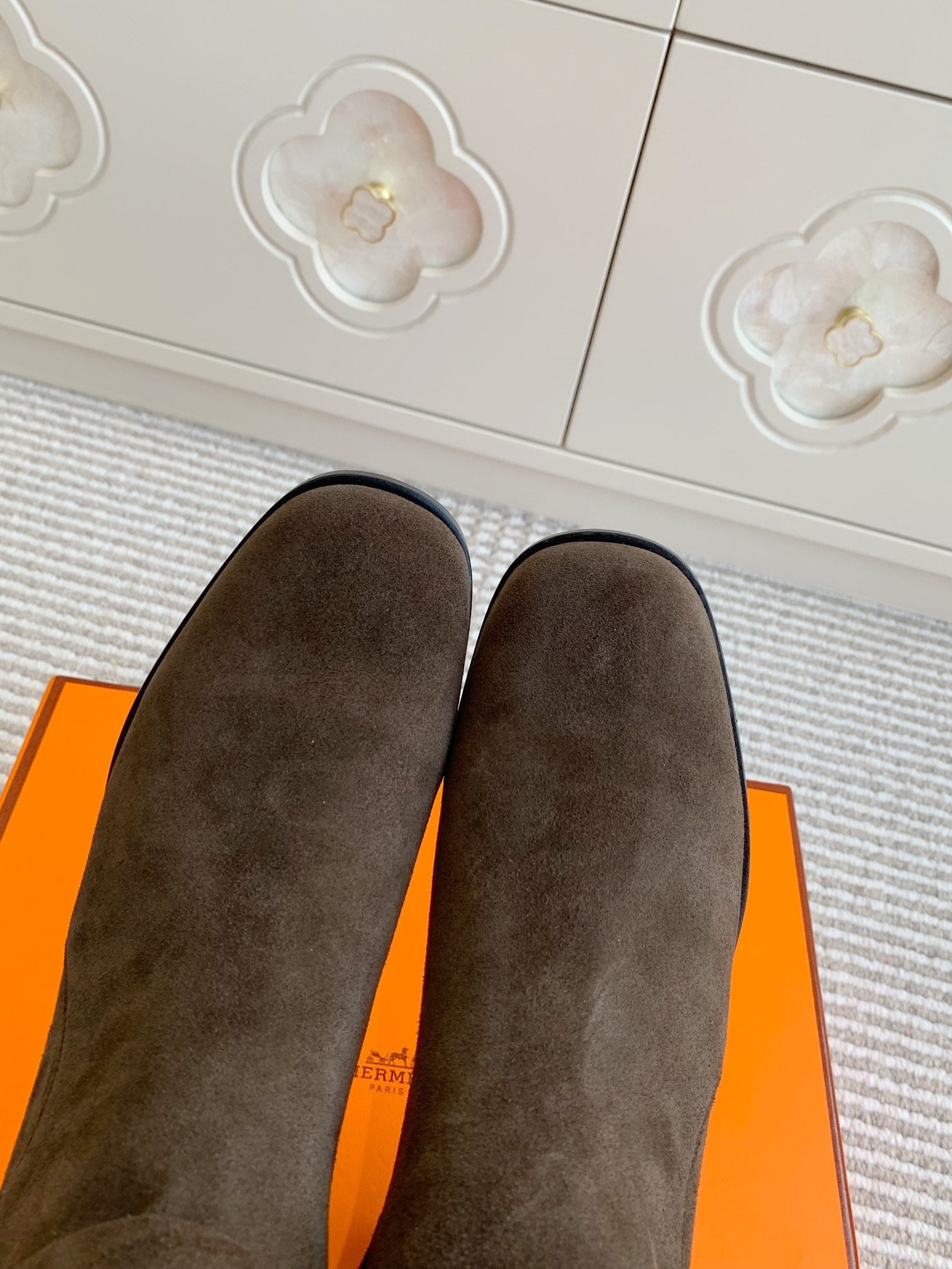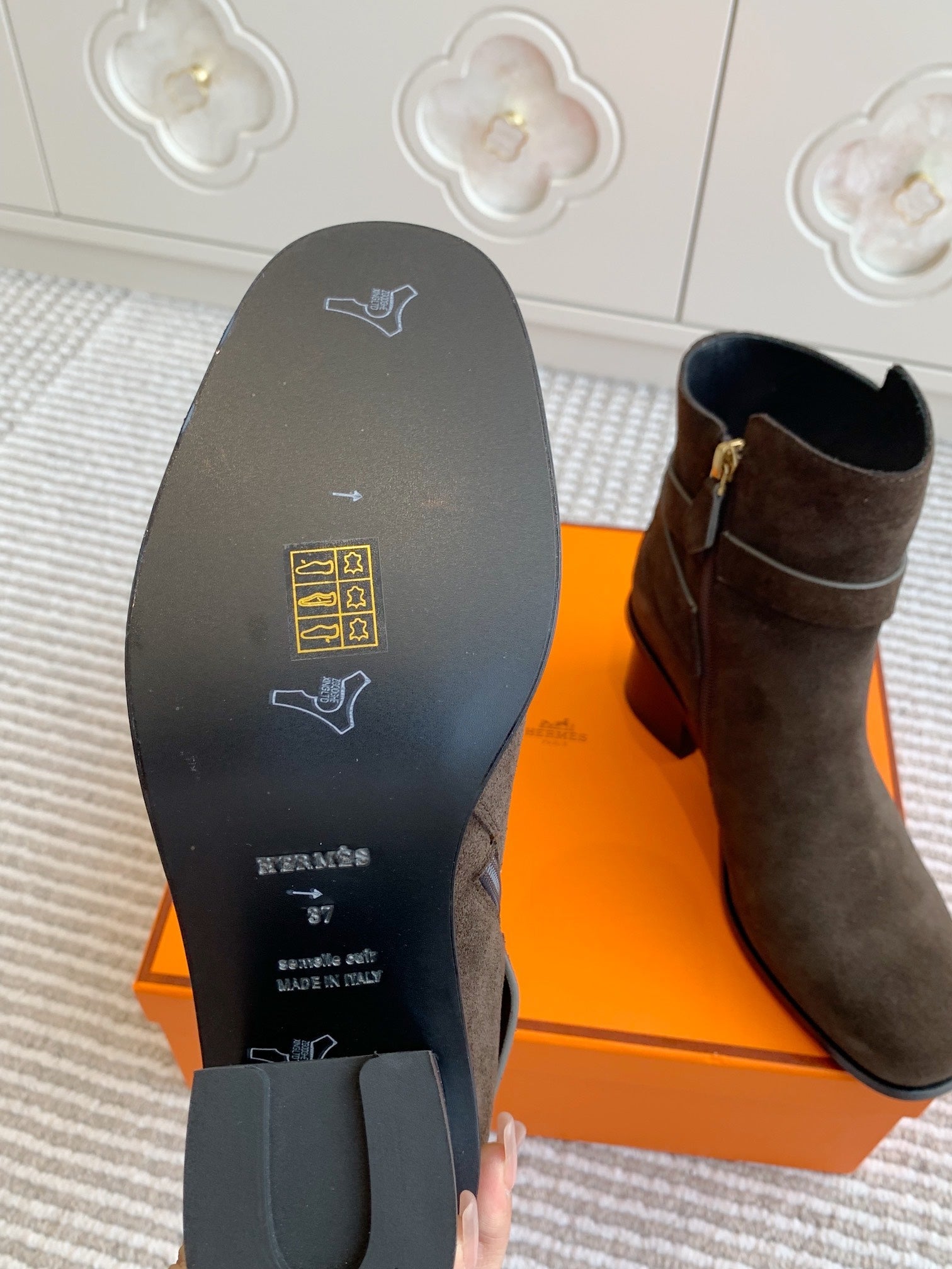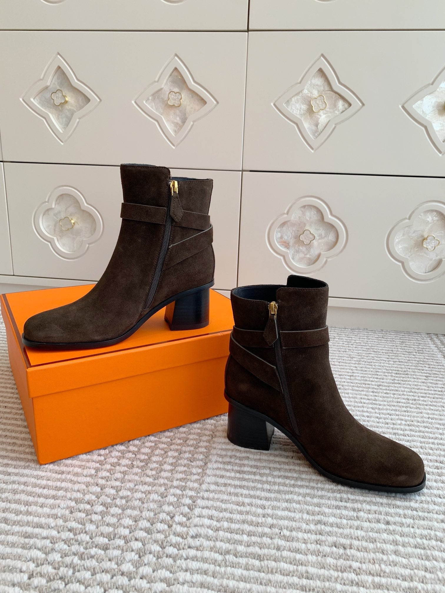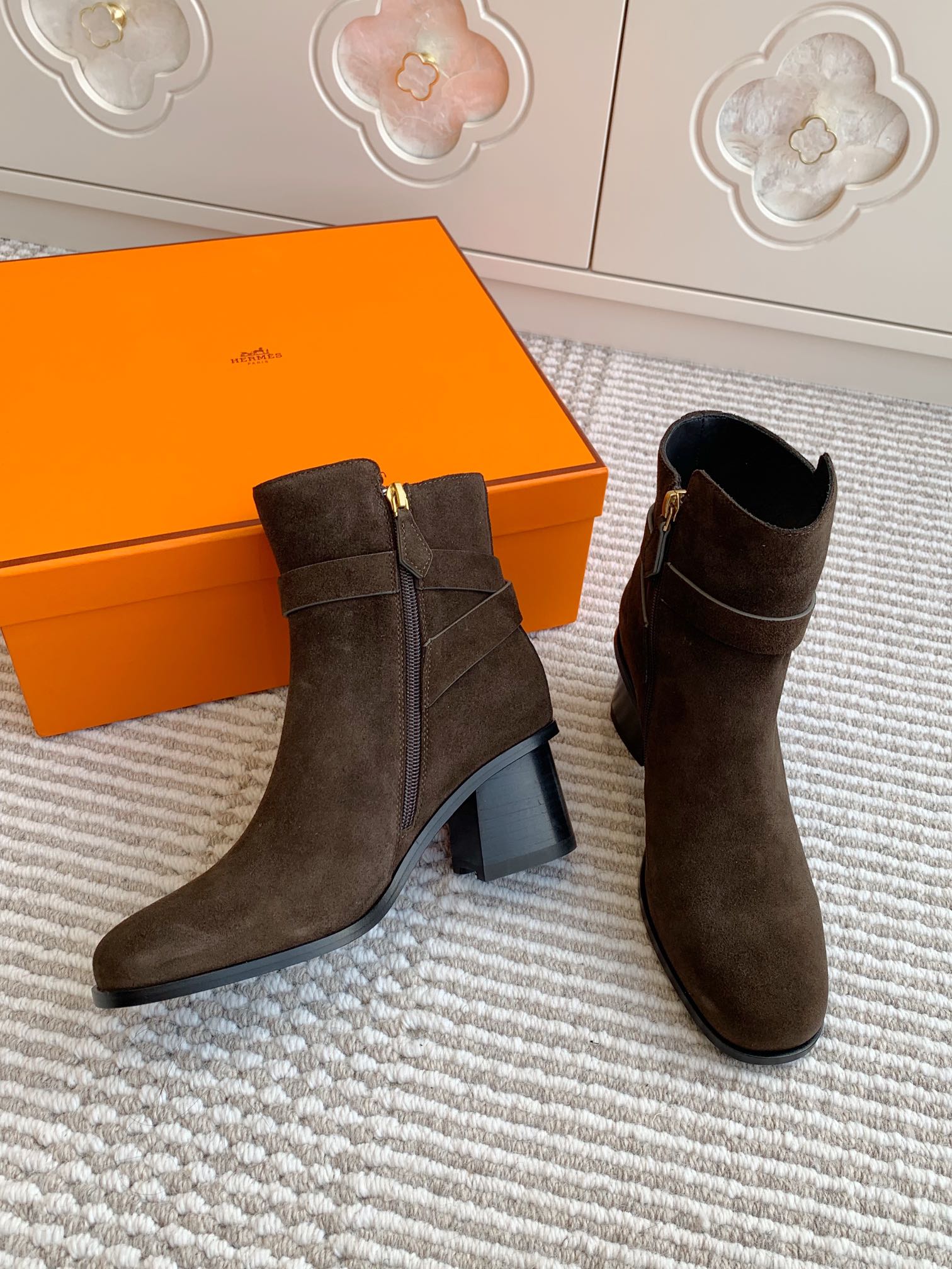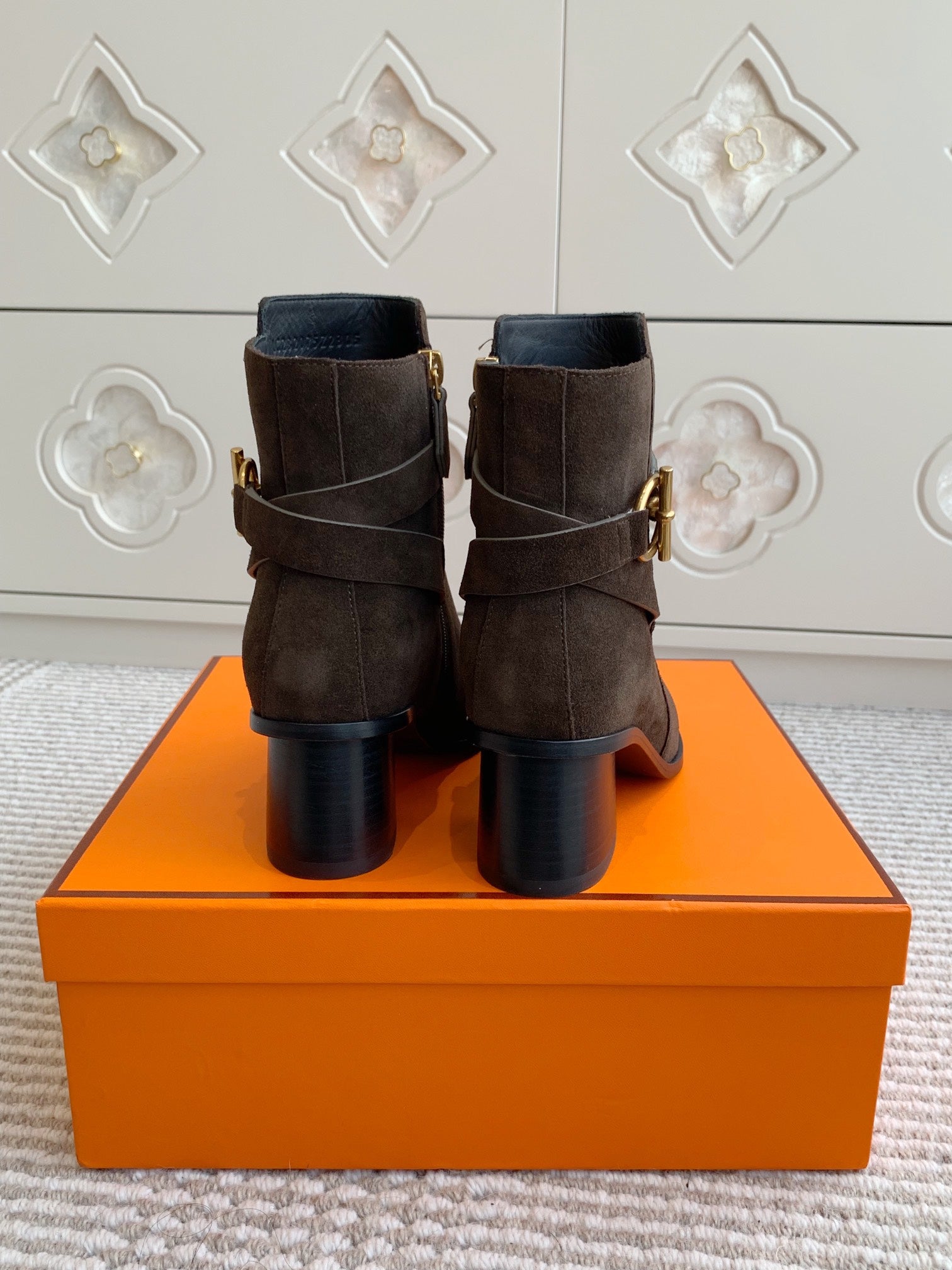 HM 25S ANKLE BOOTS 50 MM IN DARK BROWN SUEDE WITH GOLD HARDWARE