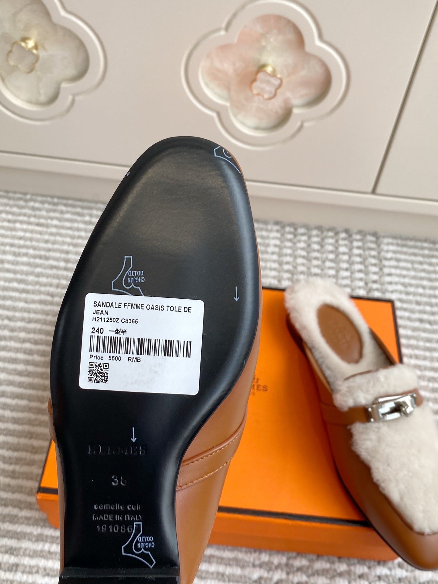 HM 25S CATENA MULE IN BEIGE SHEARLING AND BROWN LAMBSKIN WITH SILVER HARDWARE