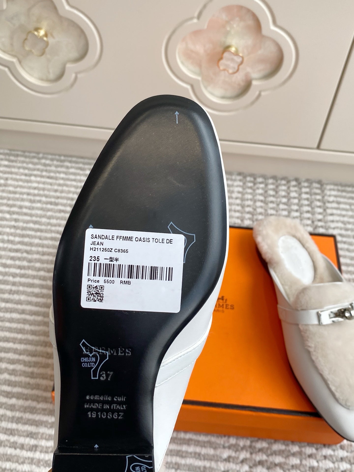 HM 25S CATENA MULE IN BEIGE SHEARLING AND WHITE LAMBSKIN WITH SILVER HARDWARE