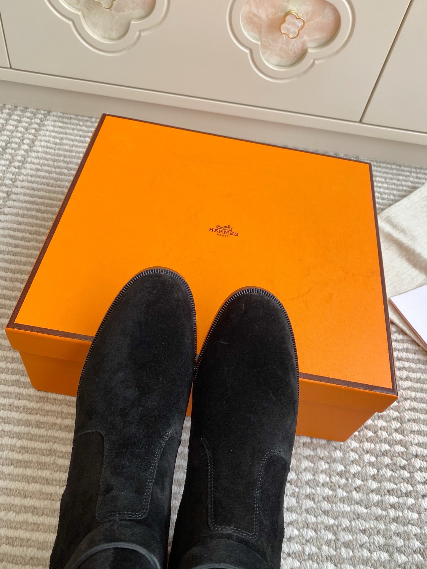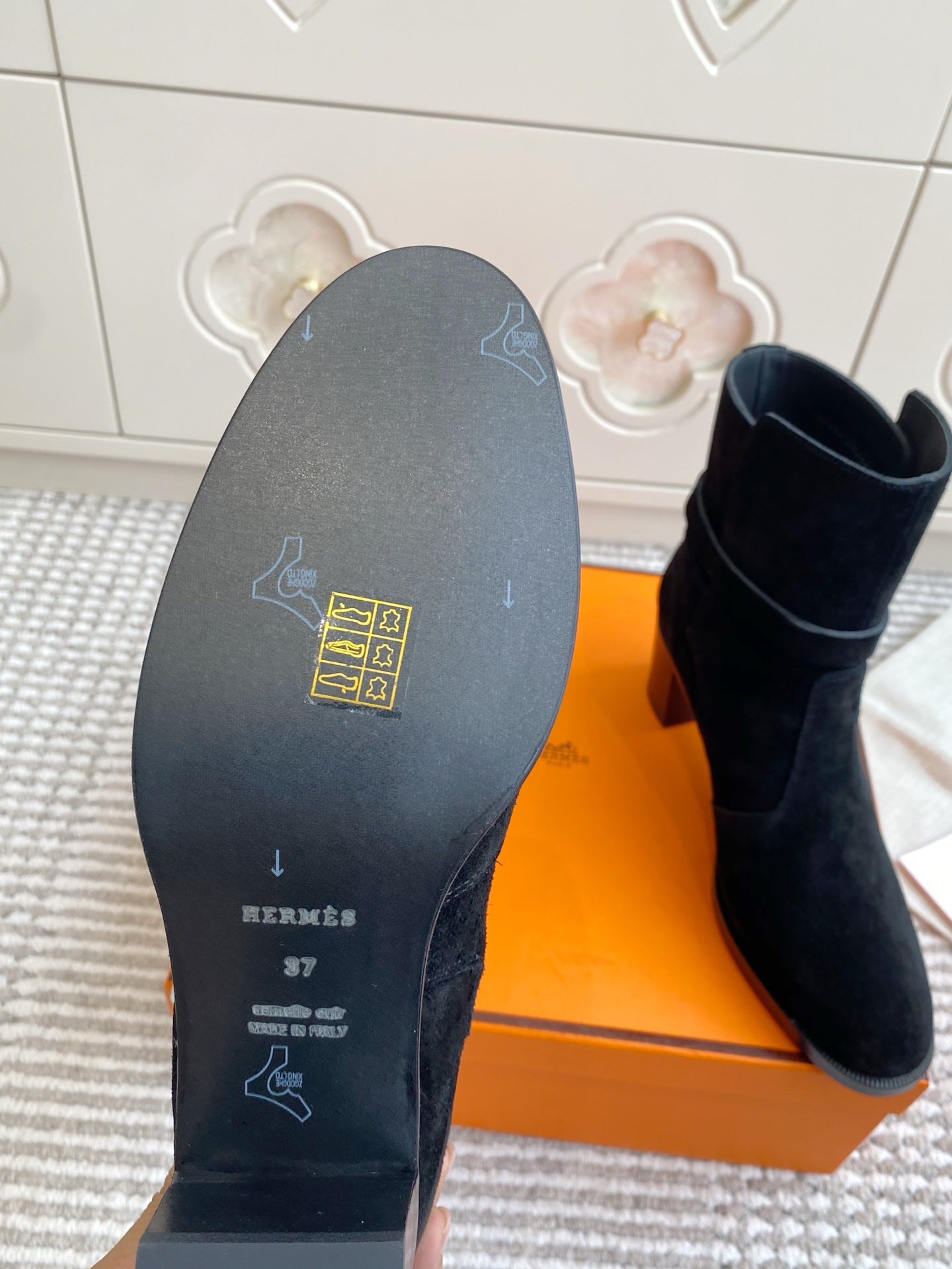 HM 25S FRENCHIE 50 ANKLE BOOT 50 MM IN BLACK SUEDE WITH SILVER HARDWARE