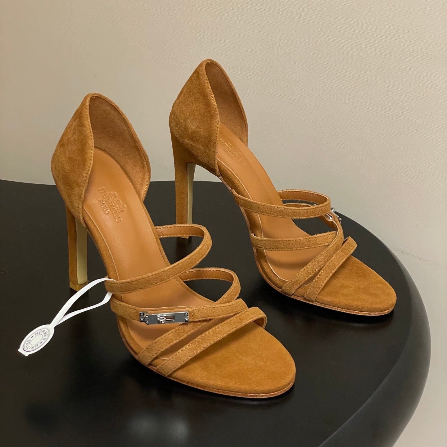 HM 25S HIGH-HEEL SANDAL 105 MM IN BROWN SUEDE