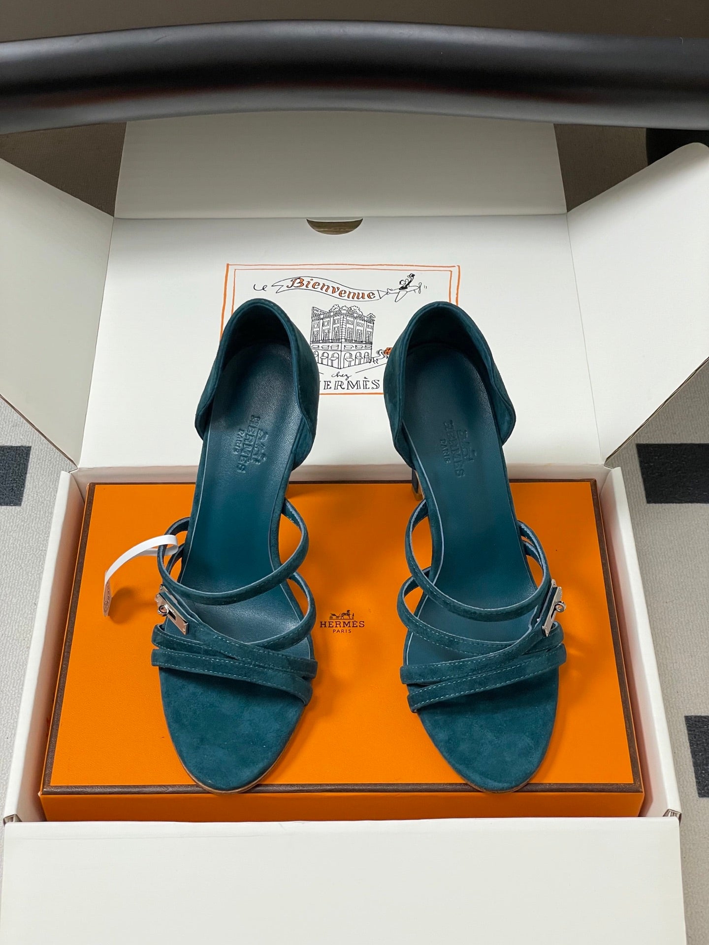 HM 25S HIGH-HEEL SANDAL 105 MM IN DARK BLUE SUEDE