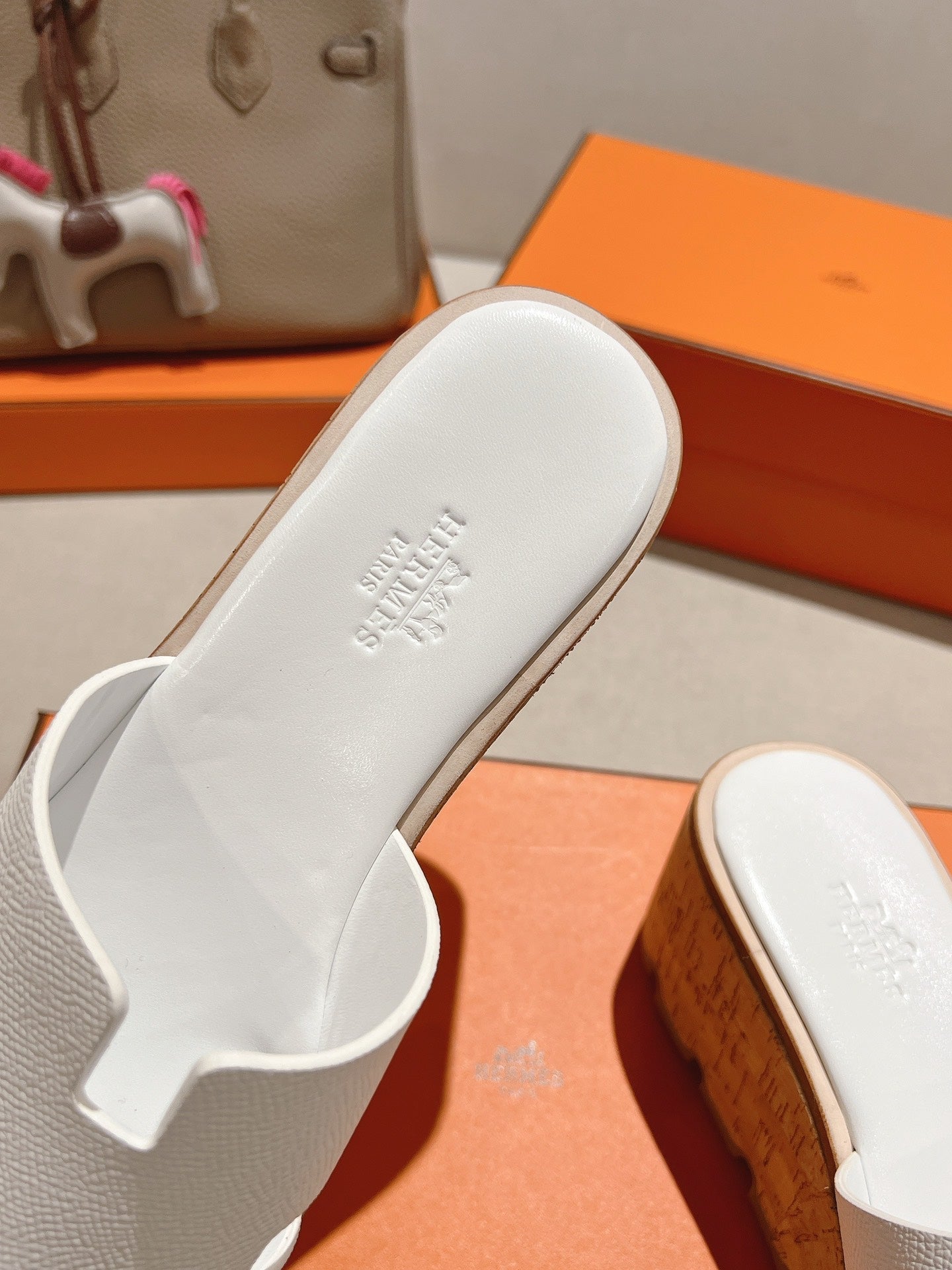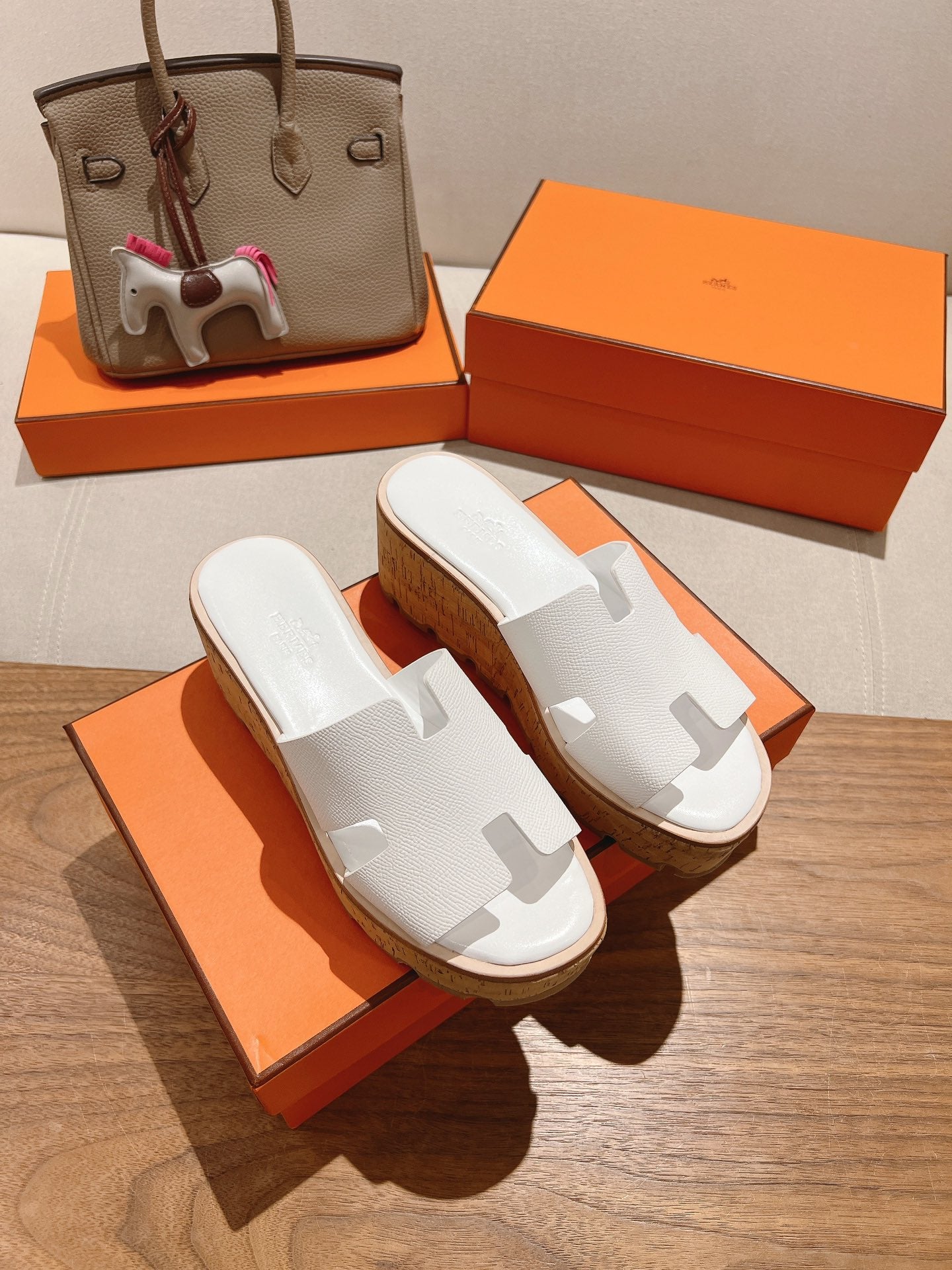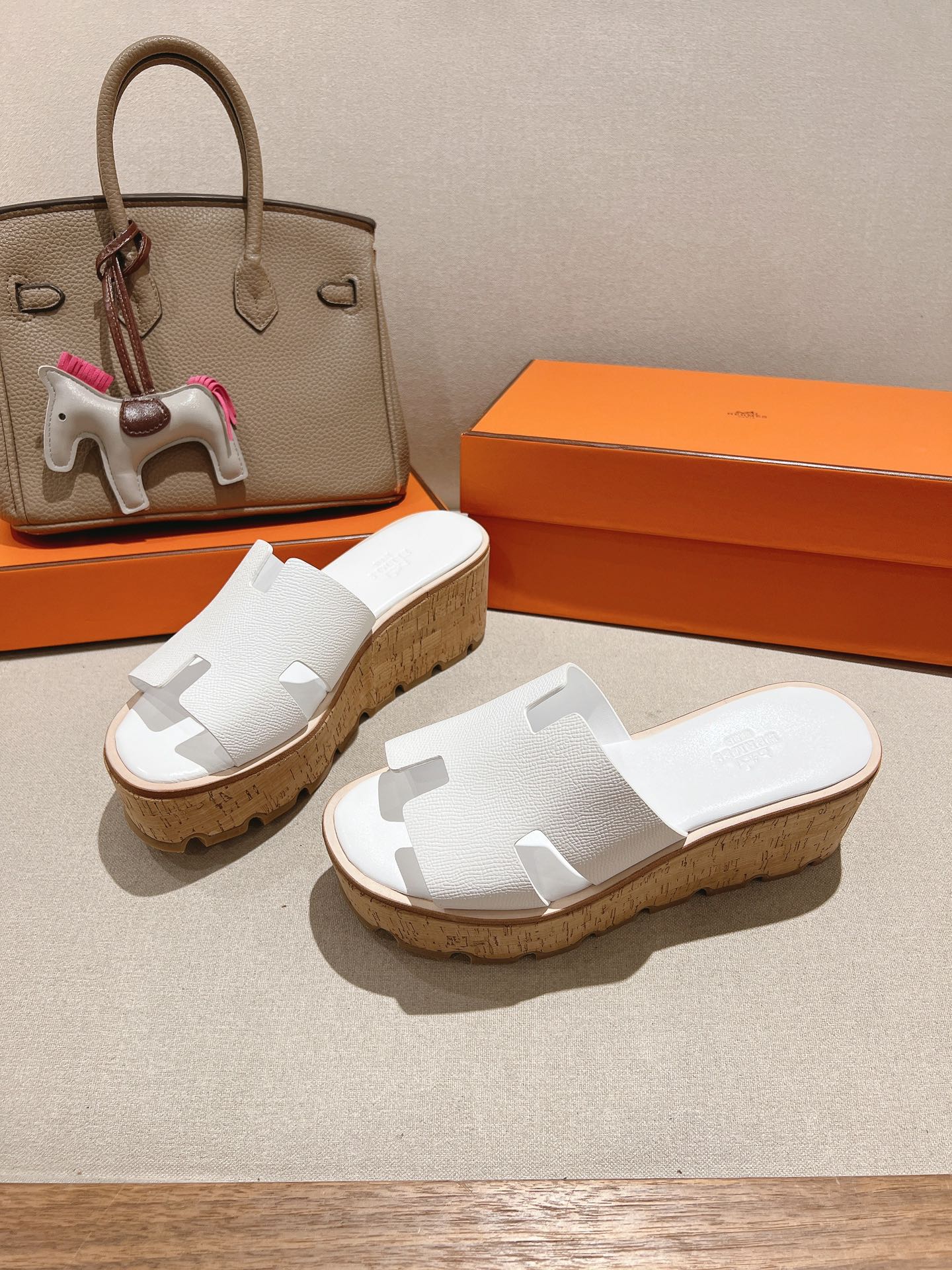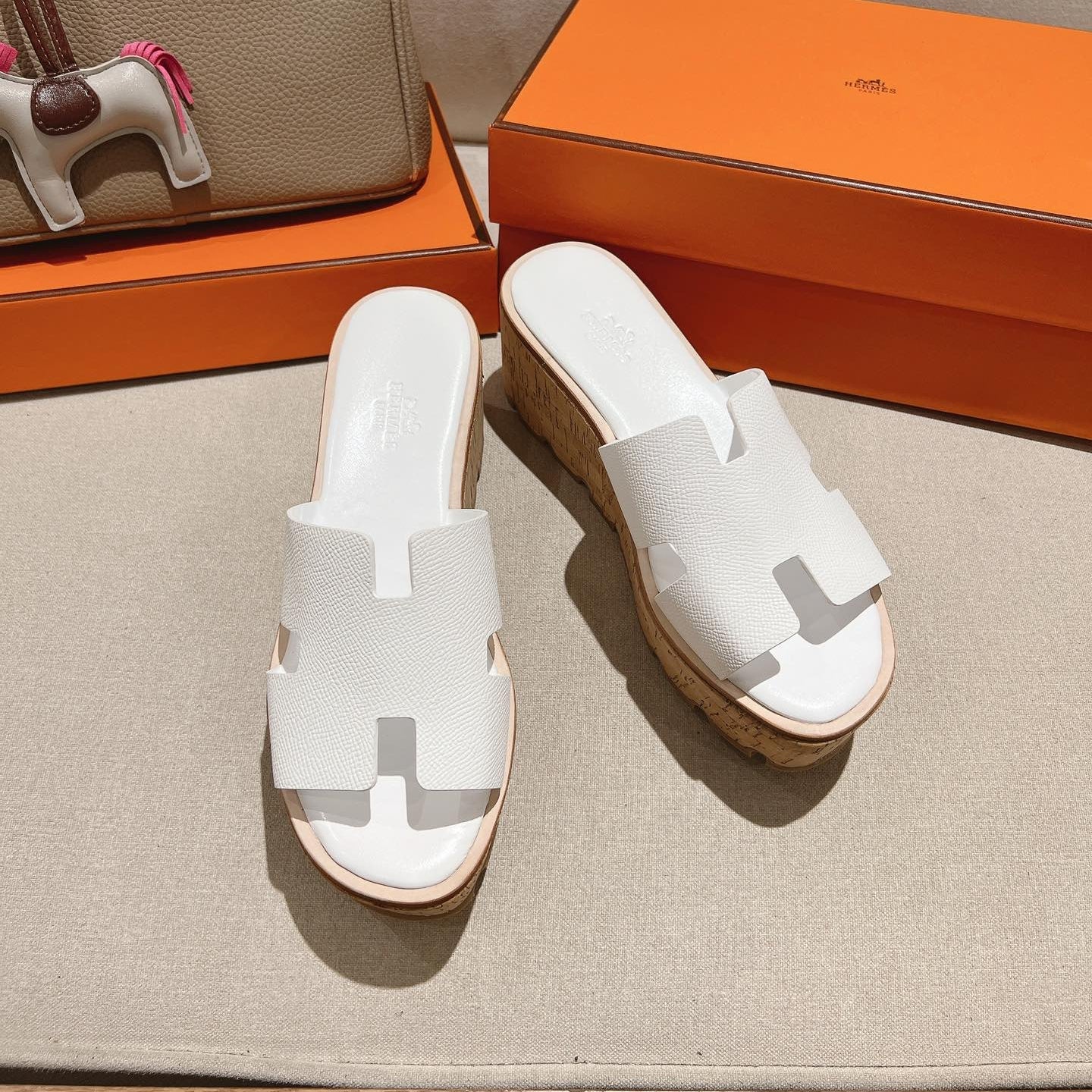 HM 25S HIGH WEDGE SANDALS IN WHITE LAMBSKIN STYLE 34