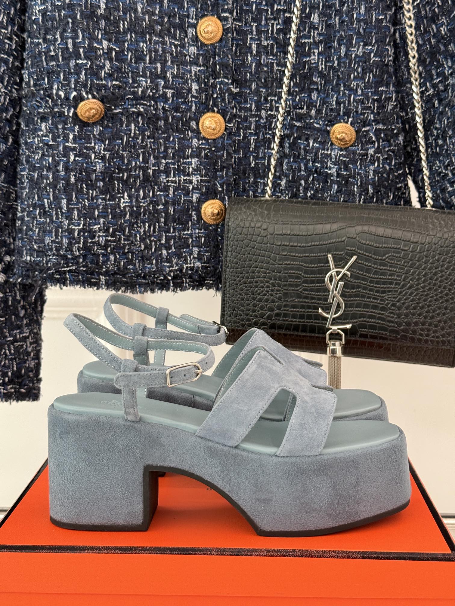 HM 25S JAM 30 HIGH-HEEL SANDAL IN STEEL BLUE GRAY SUEDE