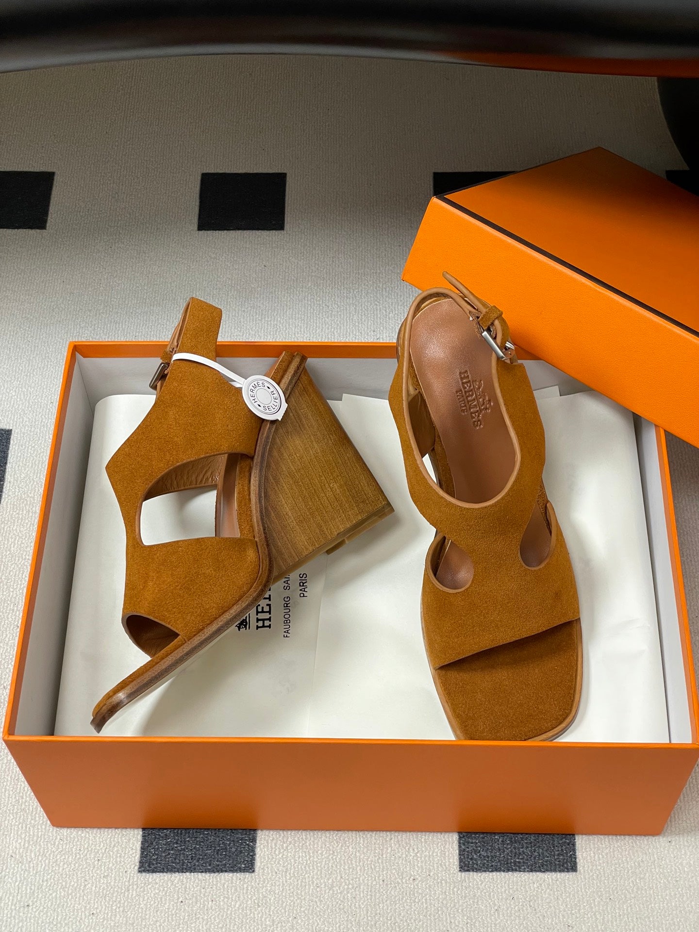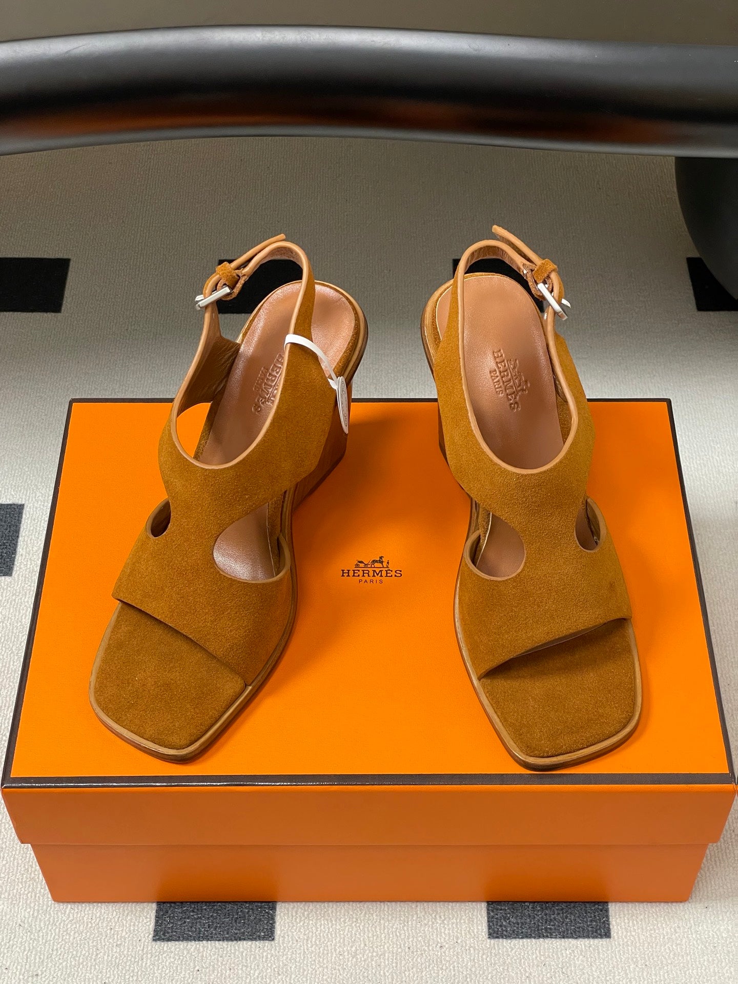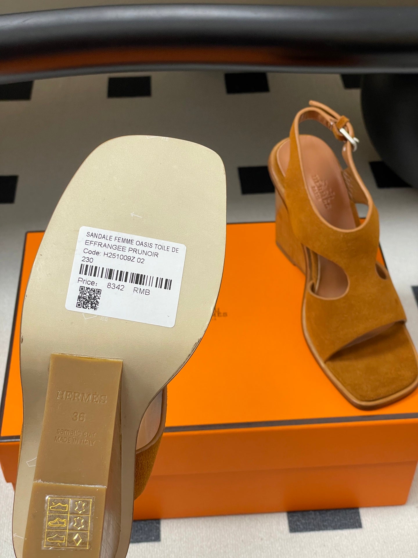 HM 25S KALYA WEDGE SANDAL 100 MM IN BROWN SUEDE