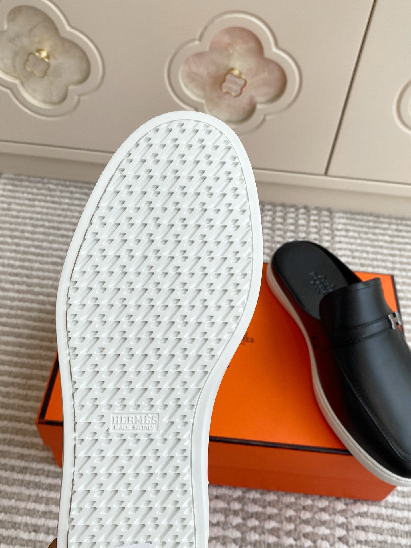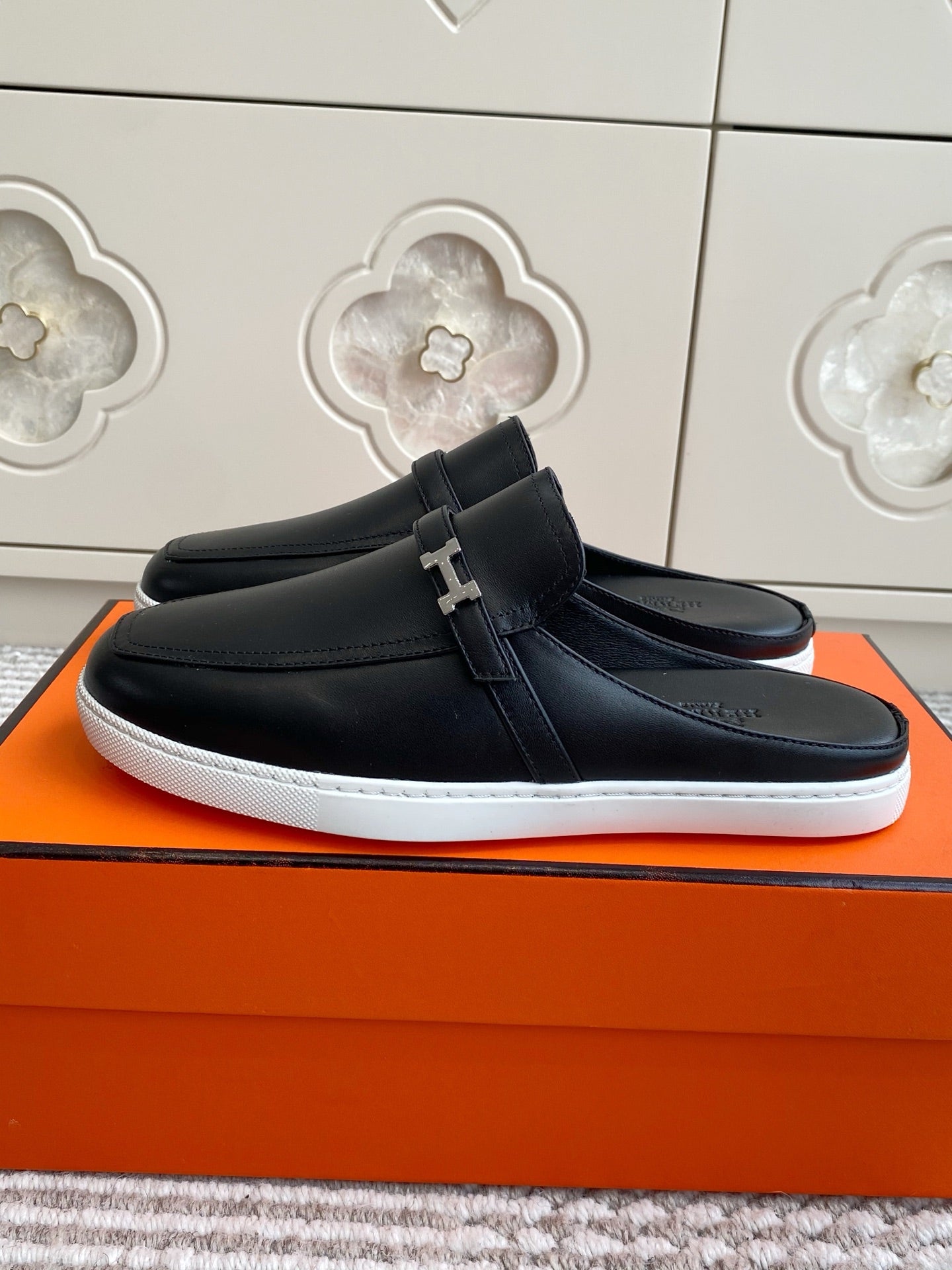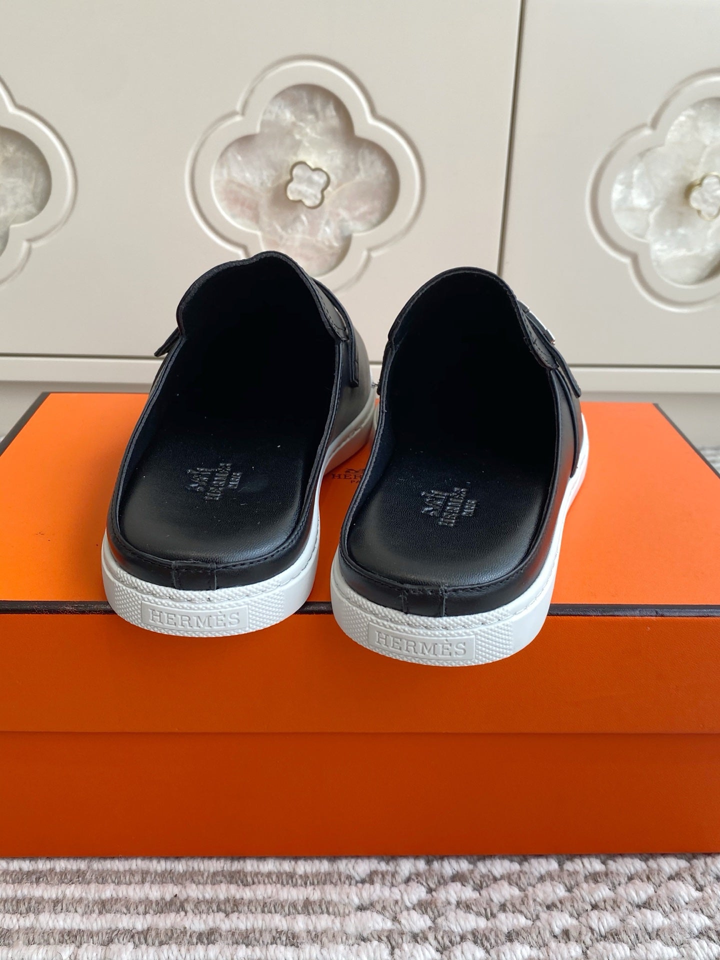 HM 25S MULES IN BLACK LAMBSKIN WITH SILVER HARDWARE