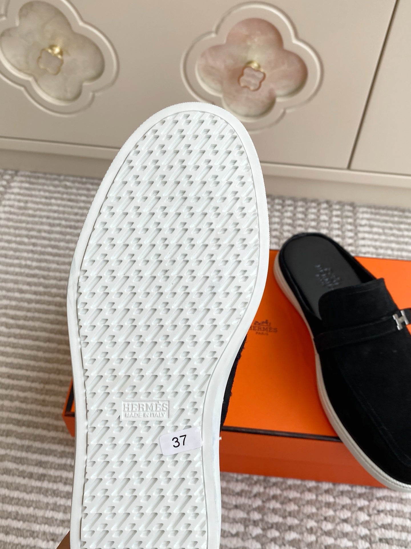 HM 25S MULES IN BLACK SUEDE WITH SILVER HARDWARE