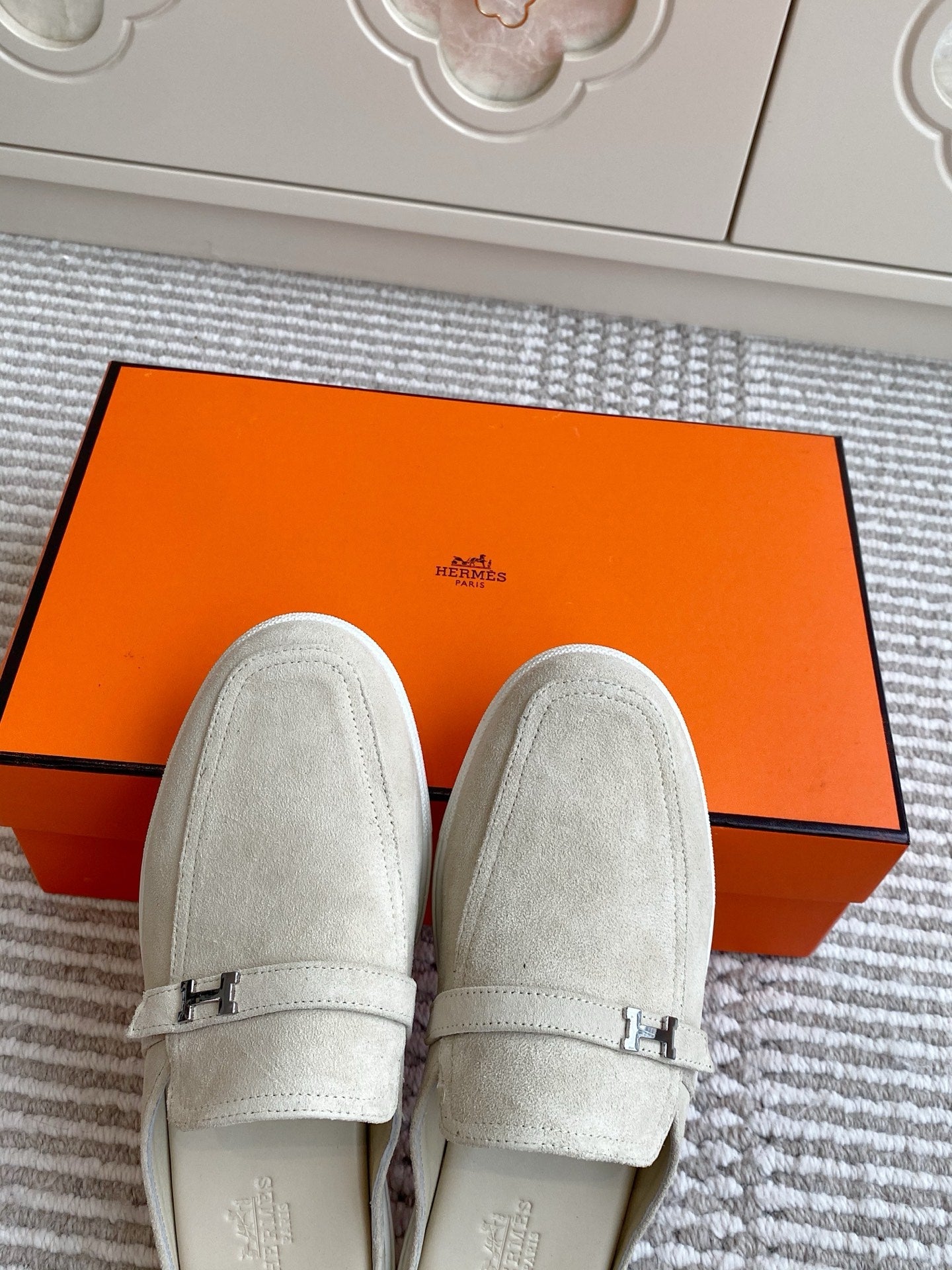 HM 25S MULES IN CREAM WHITE SUEDE WITH SILVER HARDWARE