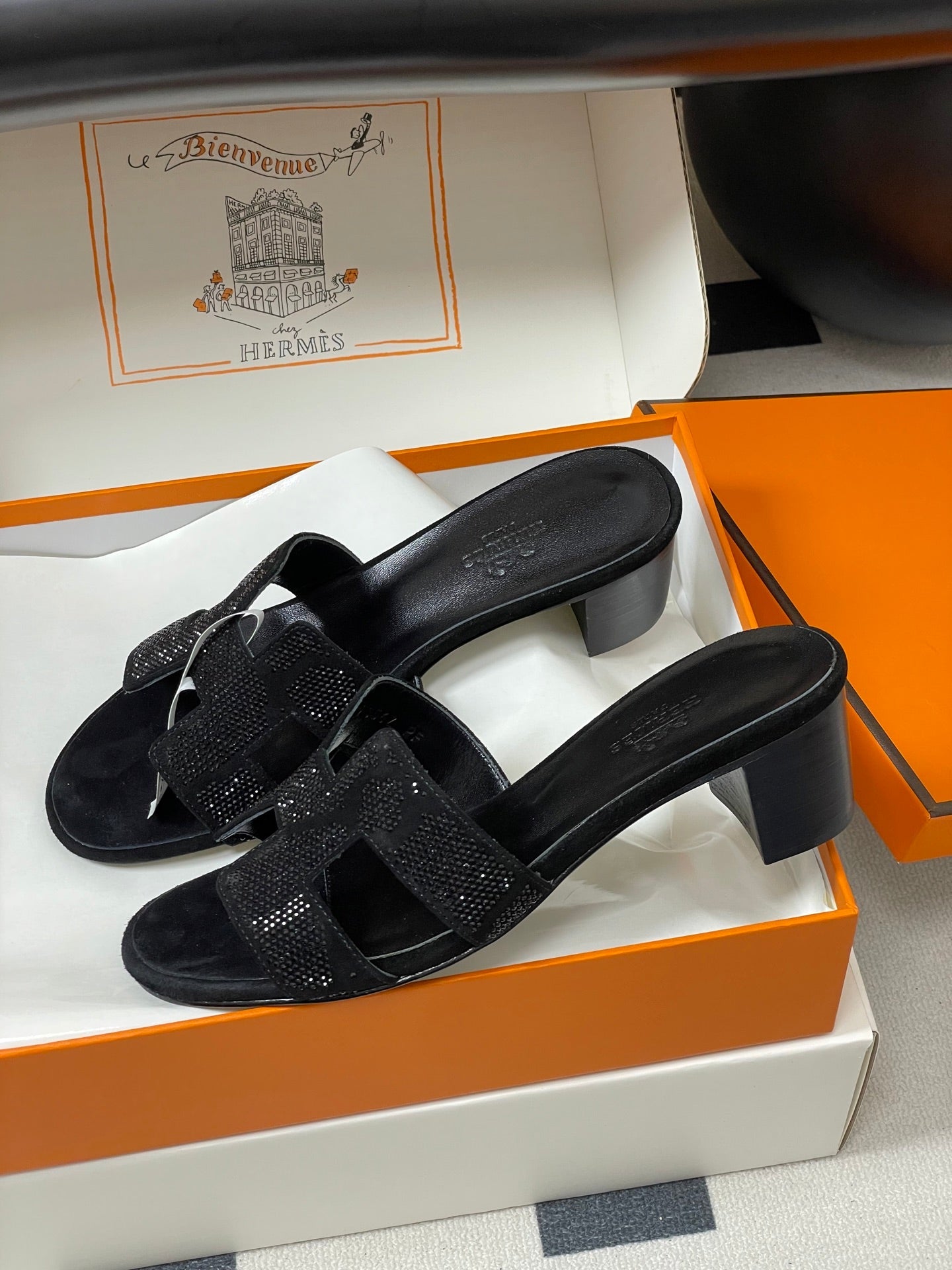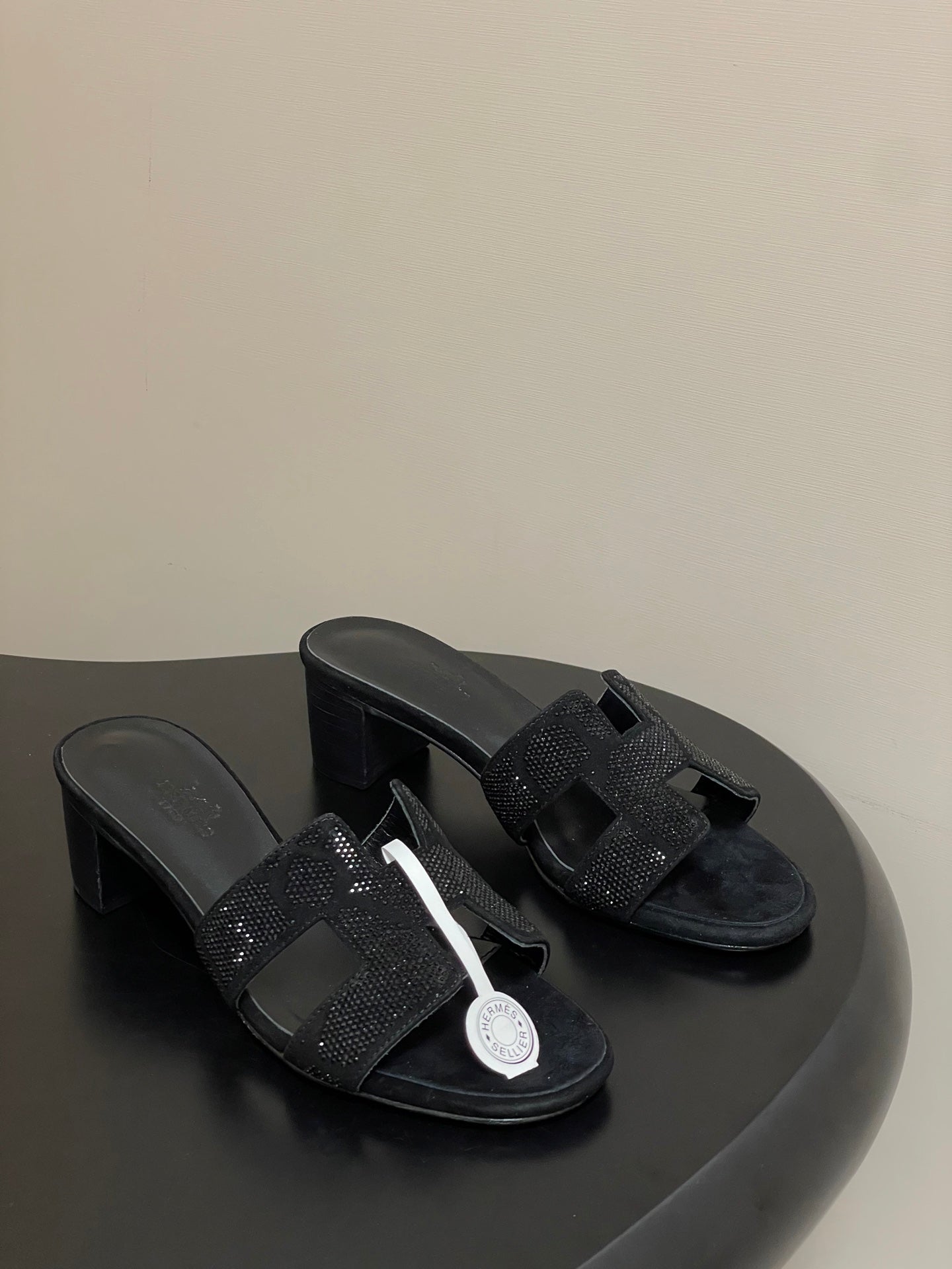 HM 25S ORAN HIGH‑HEEL SANDAL 50 MM IN BLACK LAMBSKIN WITH STONE DETAILS