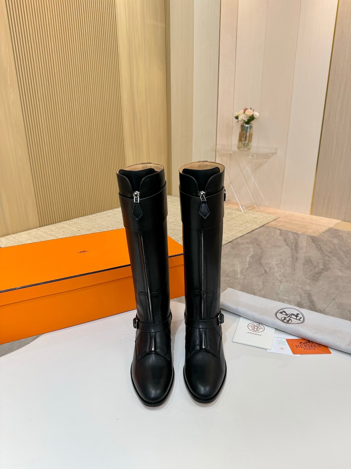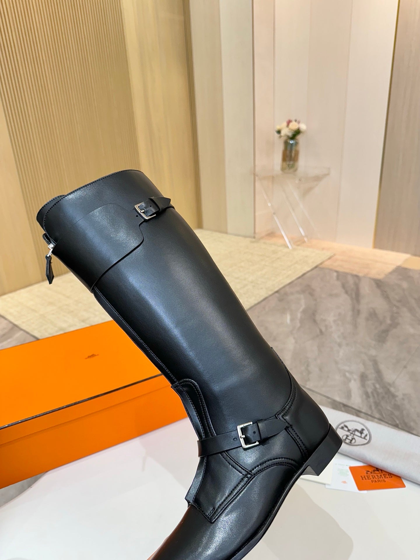 HM 25S RIDING BOOTS IN BLACK LAMBSKIN WITH SILVER HARDWARE
