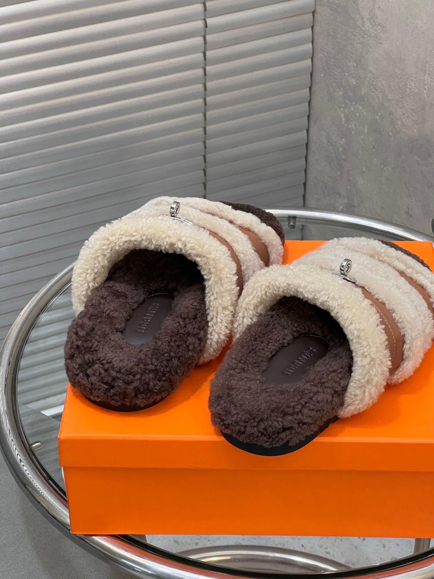 HM 25S SANDAL IN BEIGE WOOL AND BROWN LAMBSKIN WITH SILVER HARDWARE