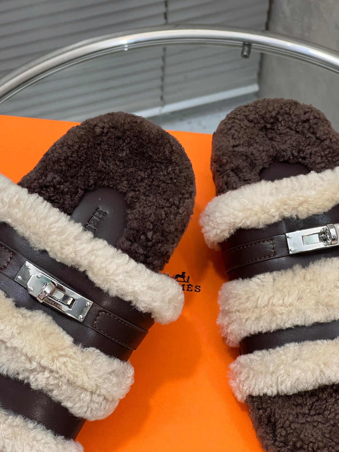 HM 25S SANDAL IN BEIGE WOOL AND DARK BROWN LAMBSKIN WITH SILVER HARDWARE