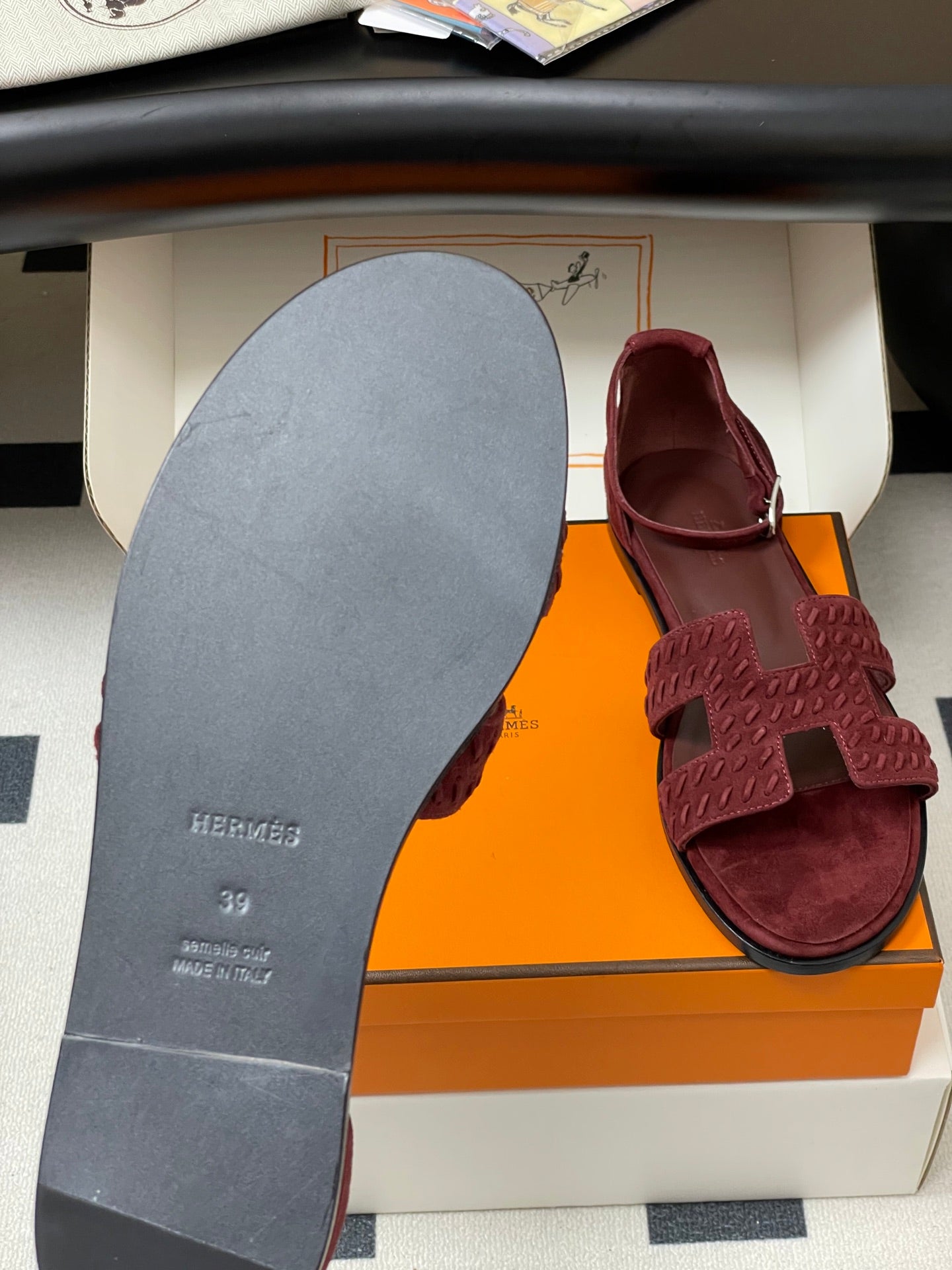 HM 25S SANTORINI SANDAL IN DARK RED SUEDE AND LAMBSKIN