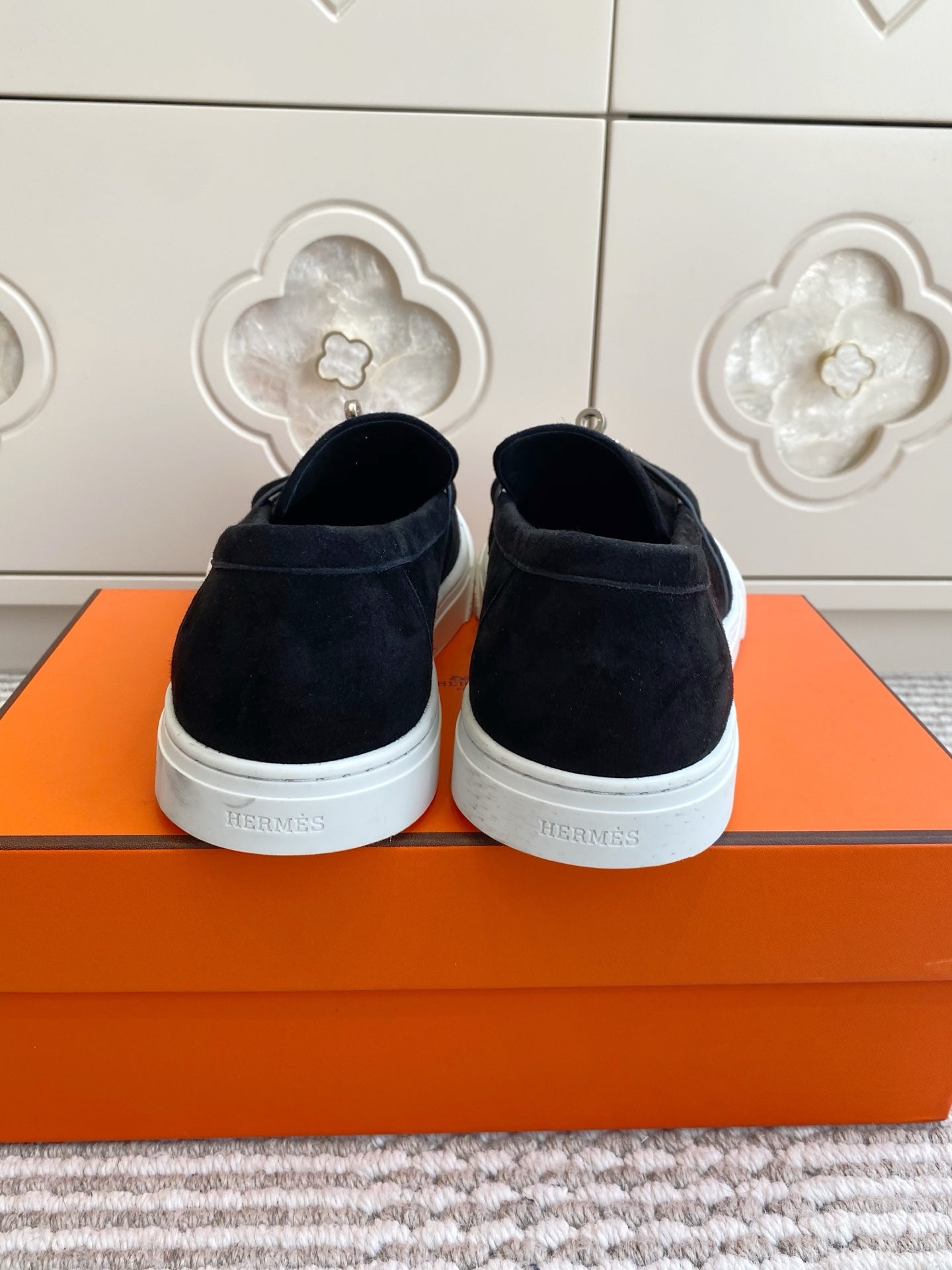 HM 25S SLIP-ON IN BLACK SUEDE WITH SILVER HARDWARE