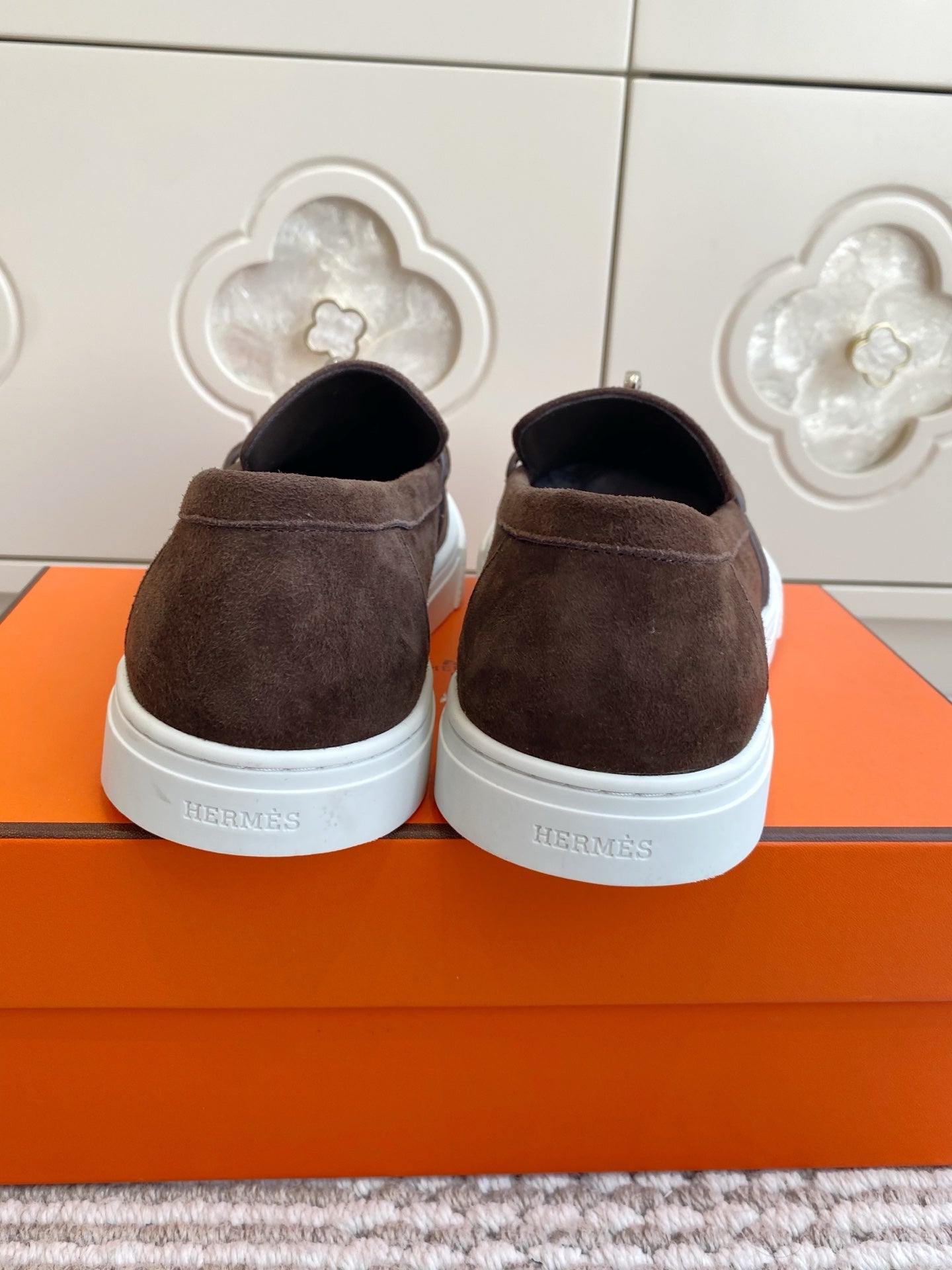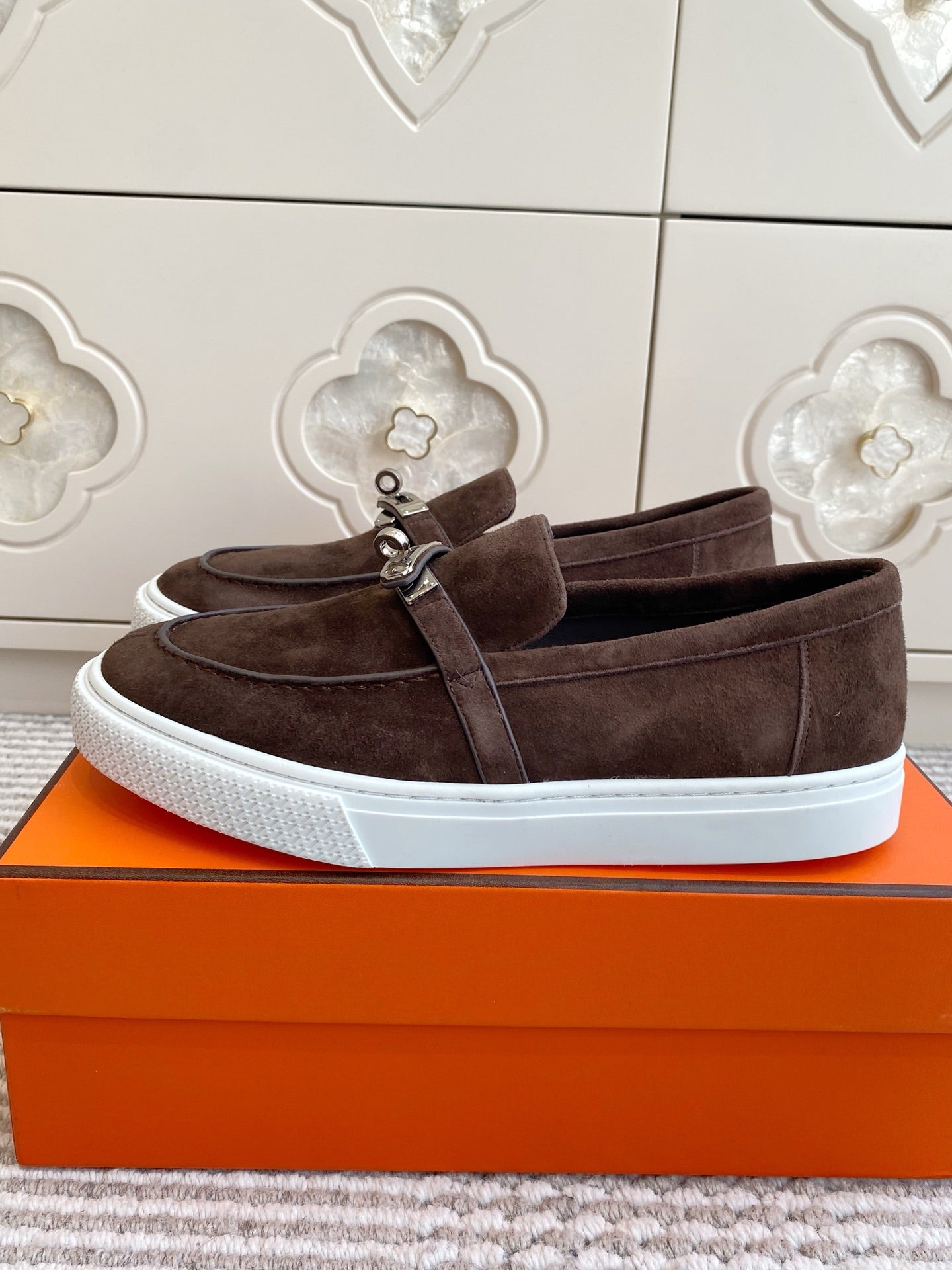 HM 25S SLIP-ON IN DARK BROWN SUEDE WITH SILVER HARDWARE