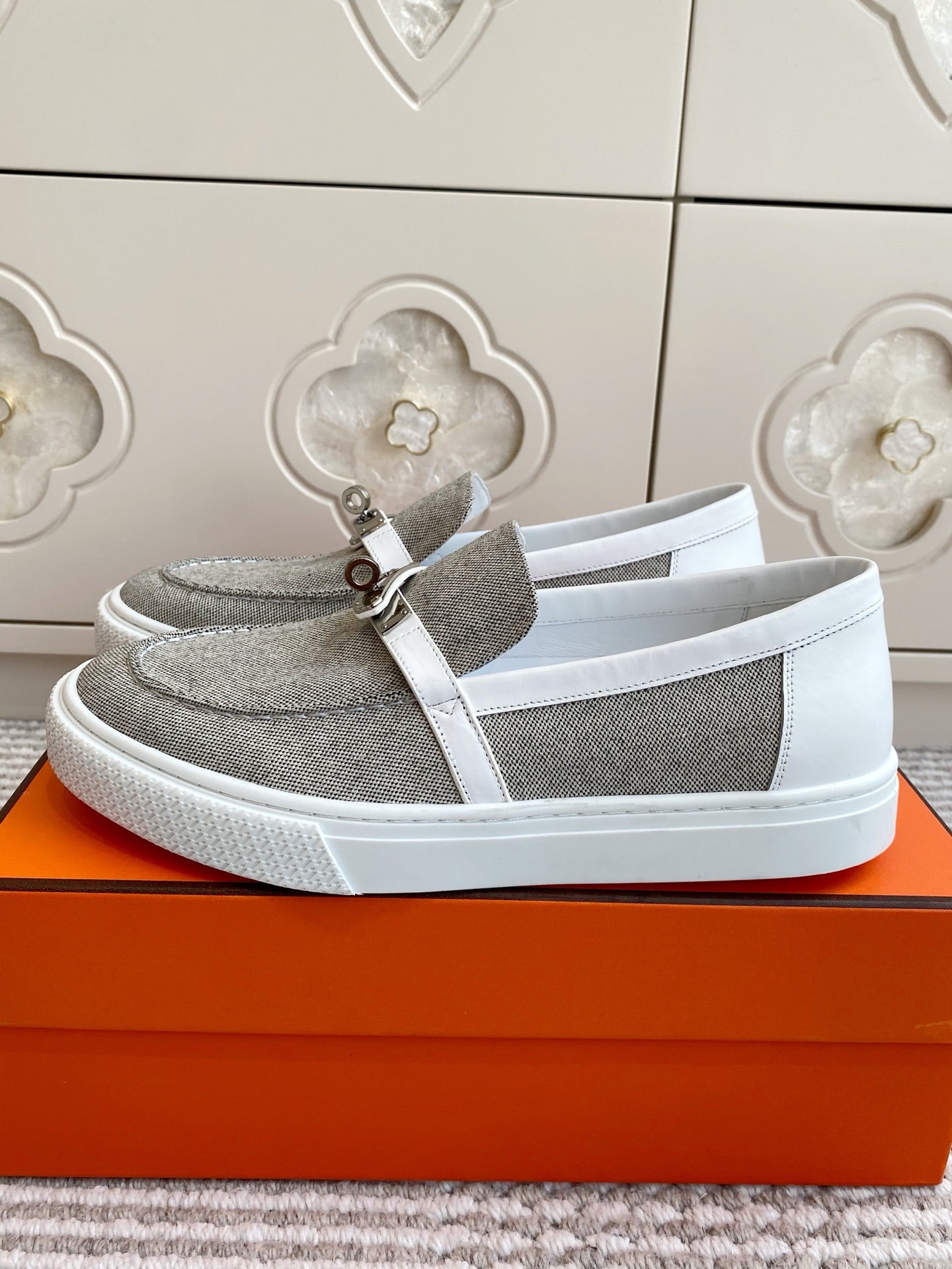 HM 25S SLIP-ON IN LIGHT GREY CANVAS WITH SILVER HARDWARE