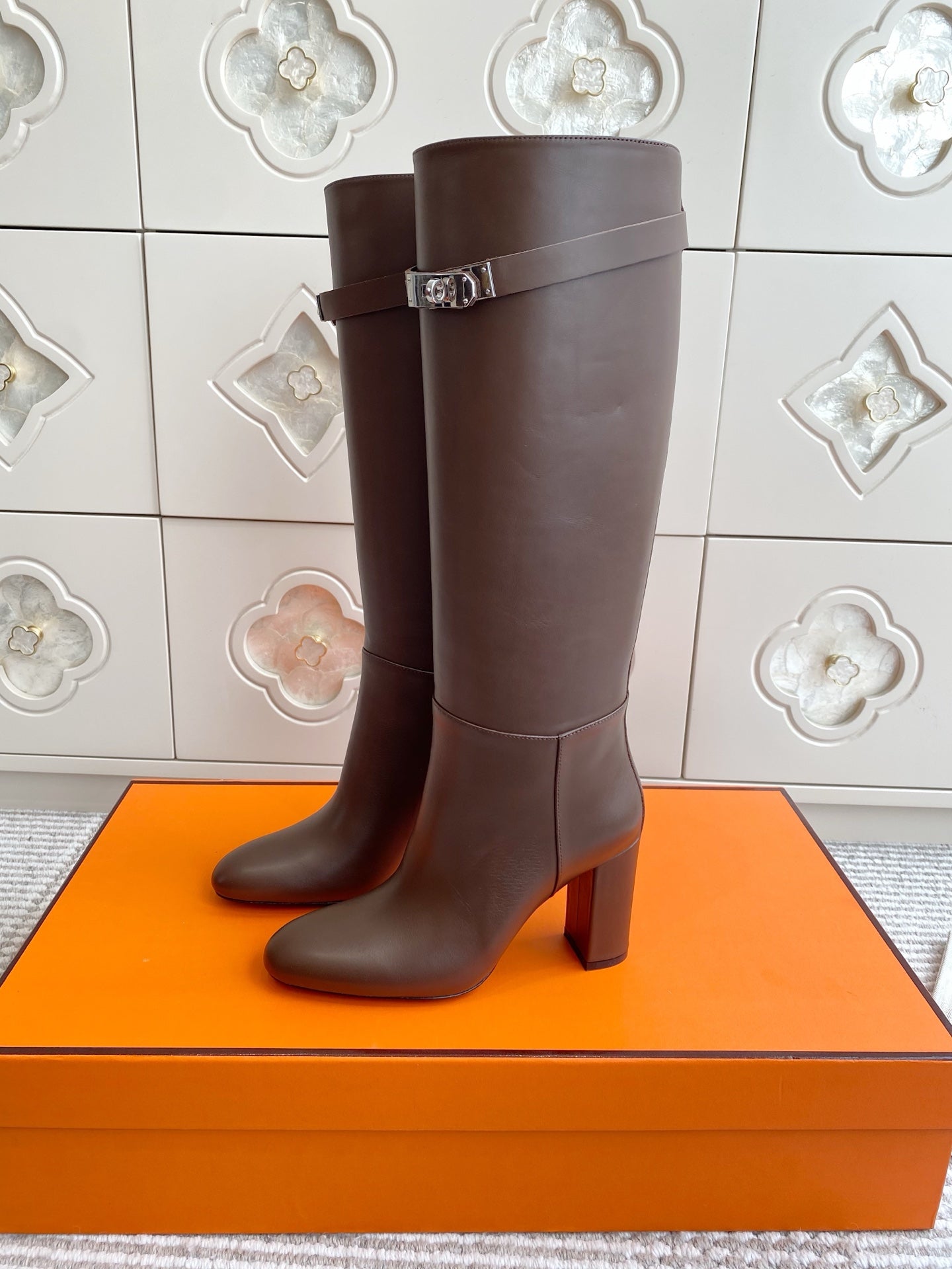 HM 25S TALL BOOTS 90 MM IN DARK BROWN LAMBSKIN WITH SILVER HARDWARE