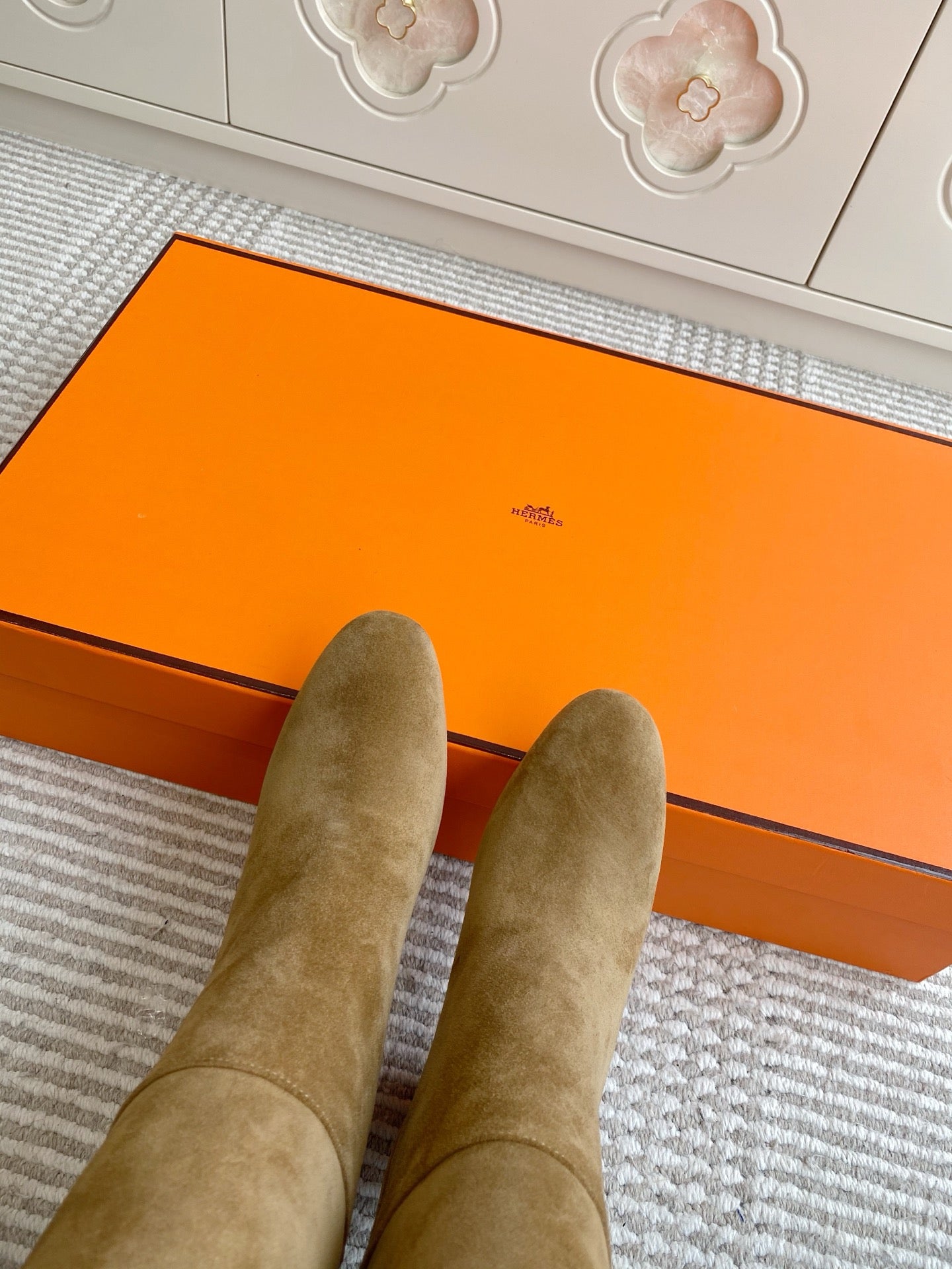 HM 25S TALL BOOTS 90 MM IN WARM BEIGE GOLD SUEDE