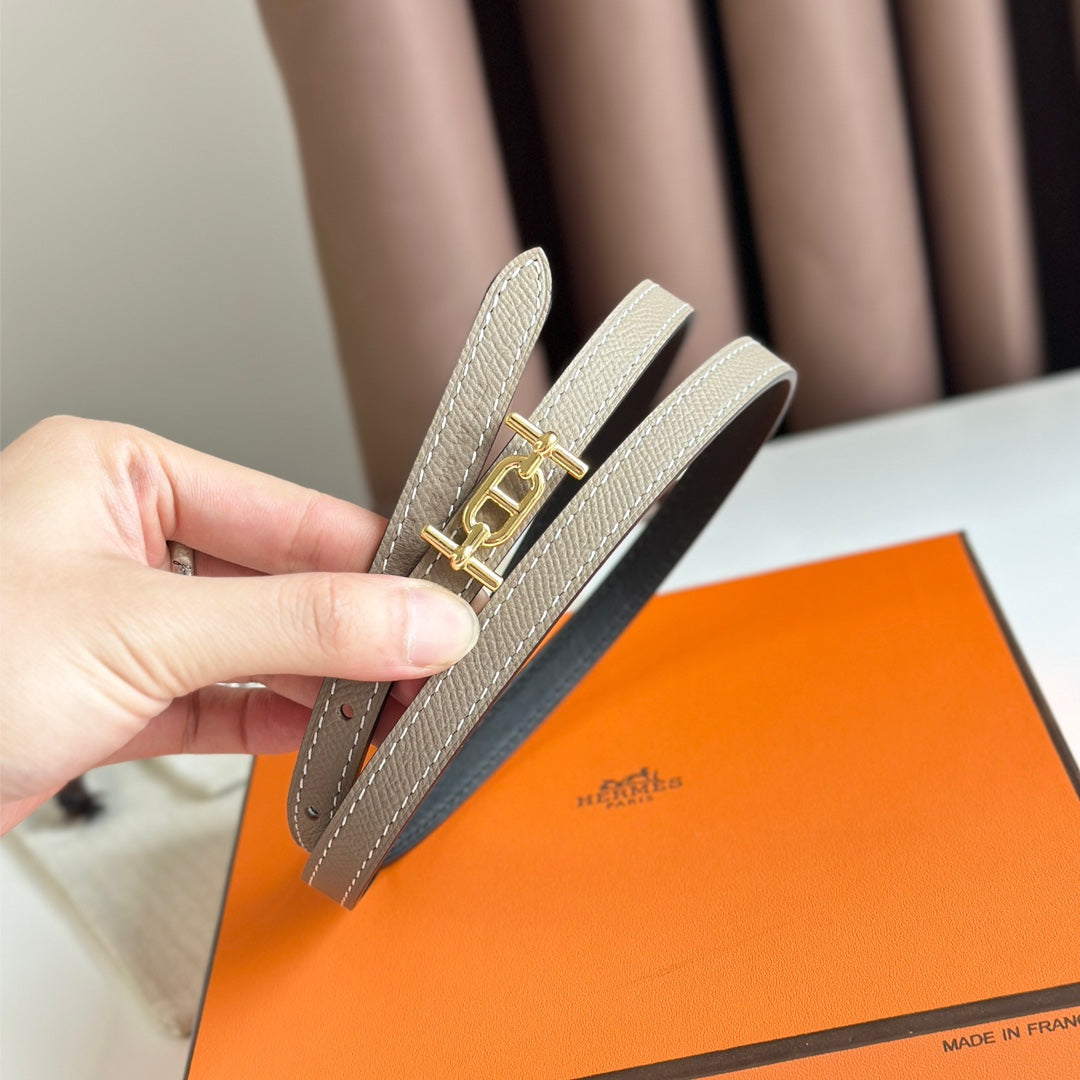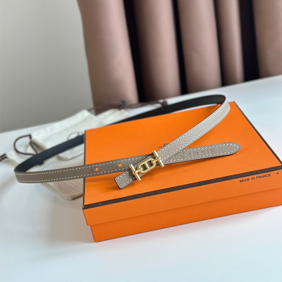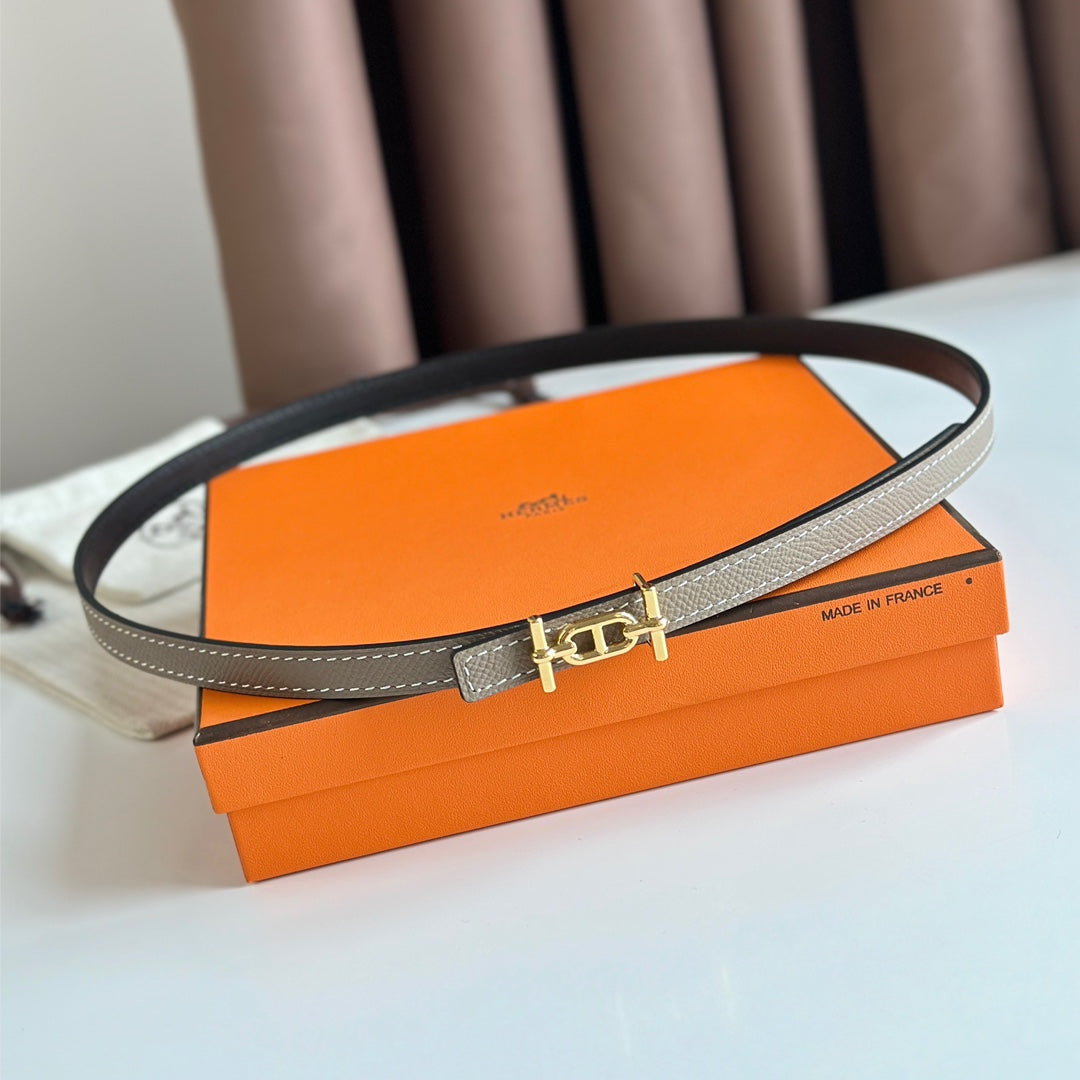 HM ANCRE BUCKLE & REVERSIBLE BLACK AND KHAKI BROWN LEATHER STRAP 13MM GOLD HARDWARE
