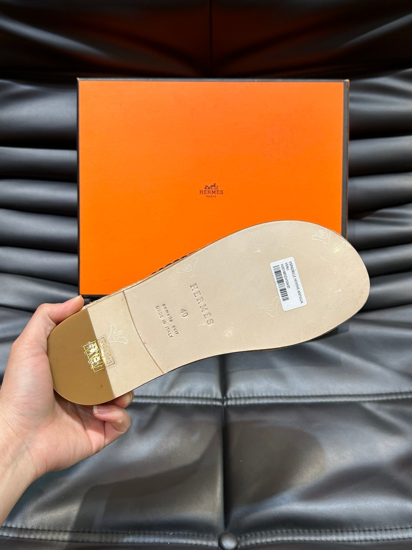 HM ANTIGUA ESPADRILLE SANDAL BLACK CALFSKIN WITH CROCODILE MOTIF
