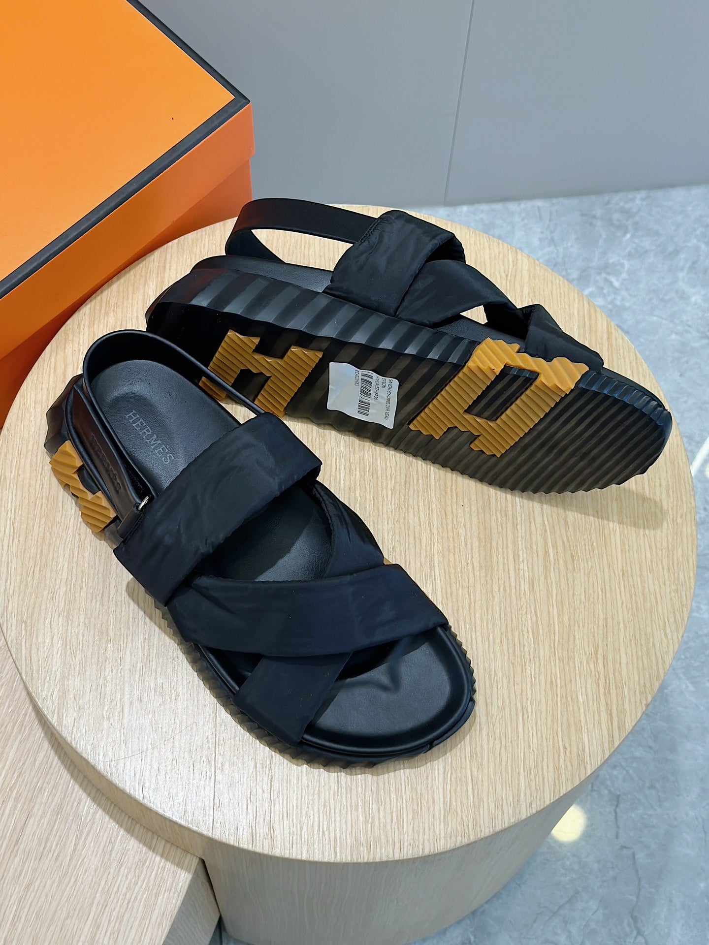HM ELECTRIC SANDAL BLACK FABRIC AND CALFSKIN