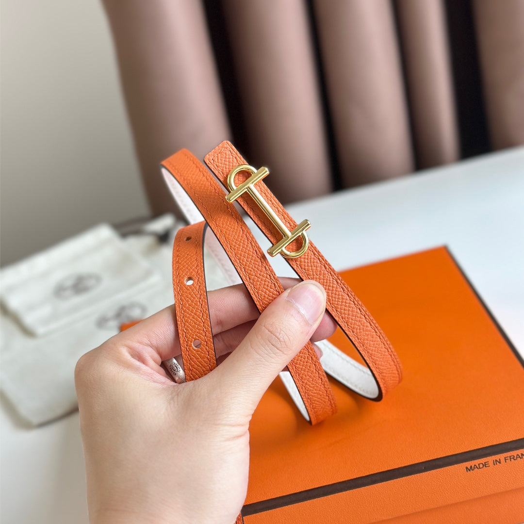 HM GAMMA BUCKLE & REVERSIBLE WHITE AND ORANGE LEATHER STRAP 13MM GOLD HARDWARE