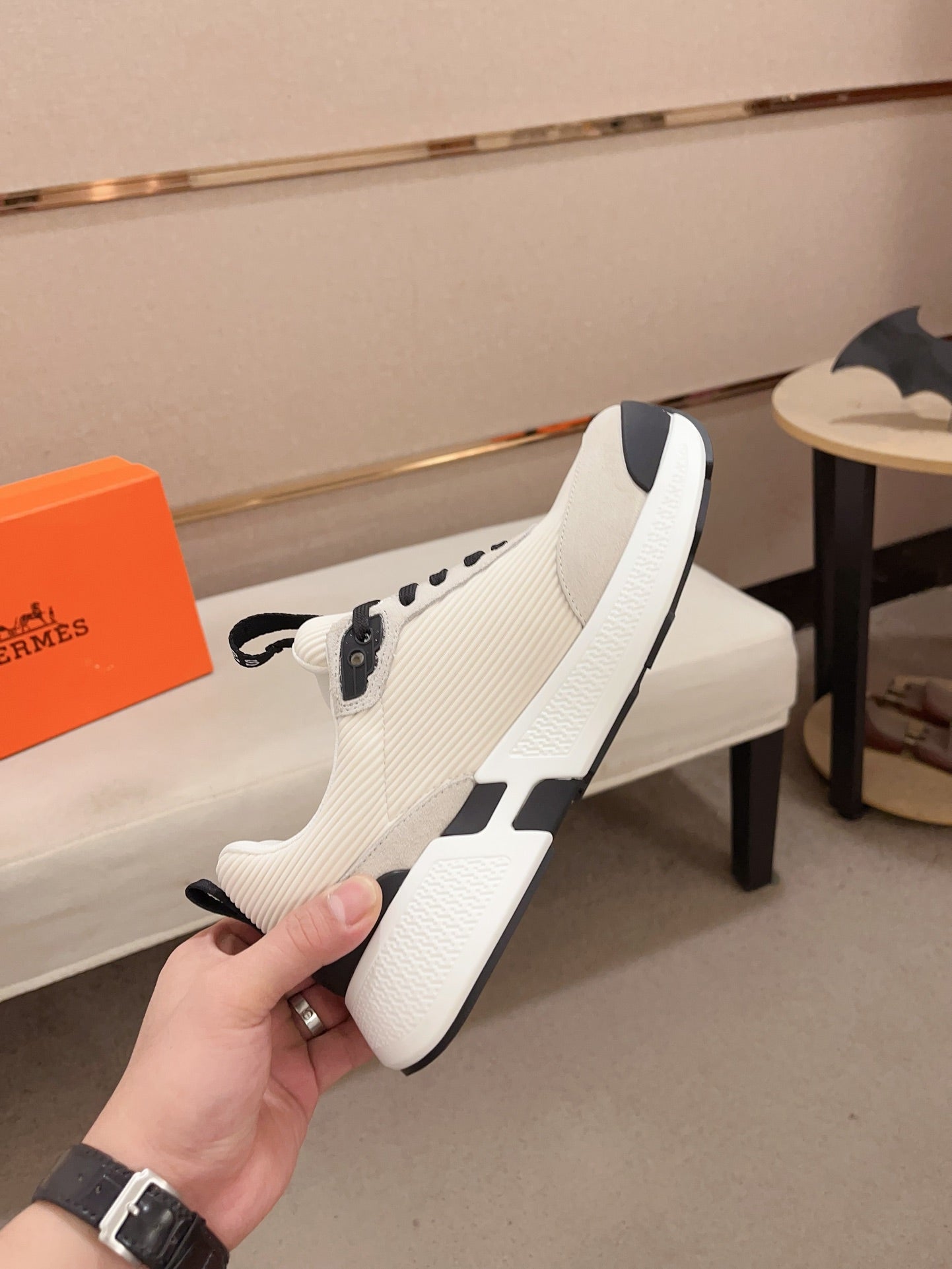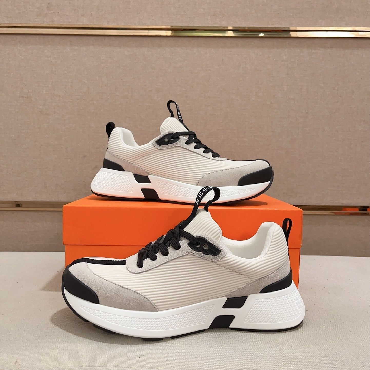HM HUGO SNEAKER CREAMY WHITE WEAVE AND SUEDE