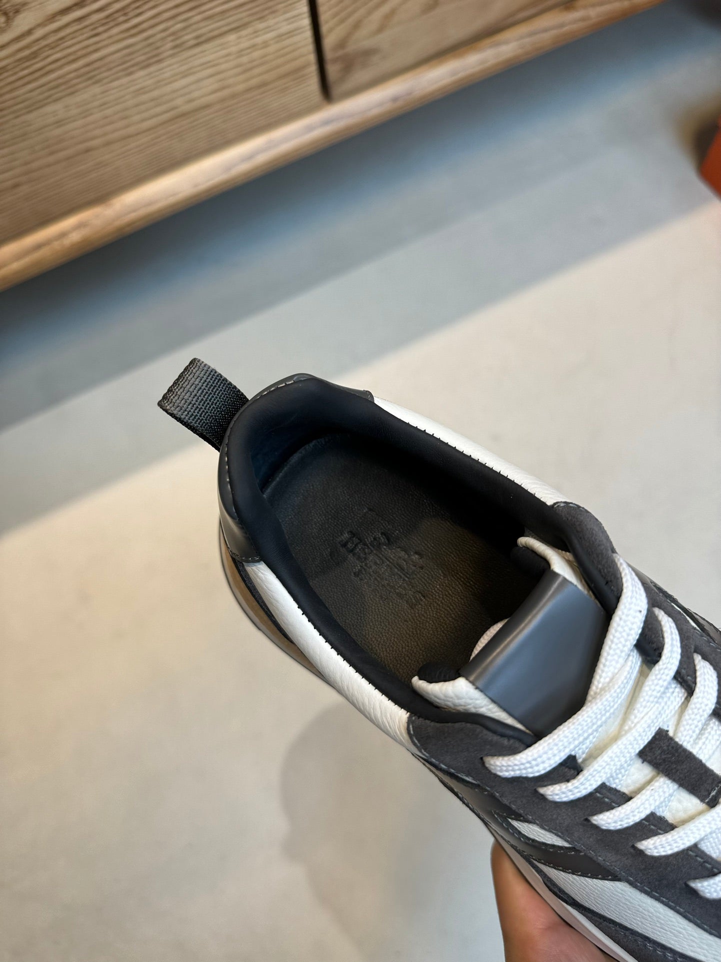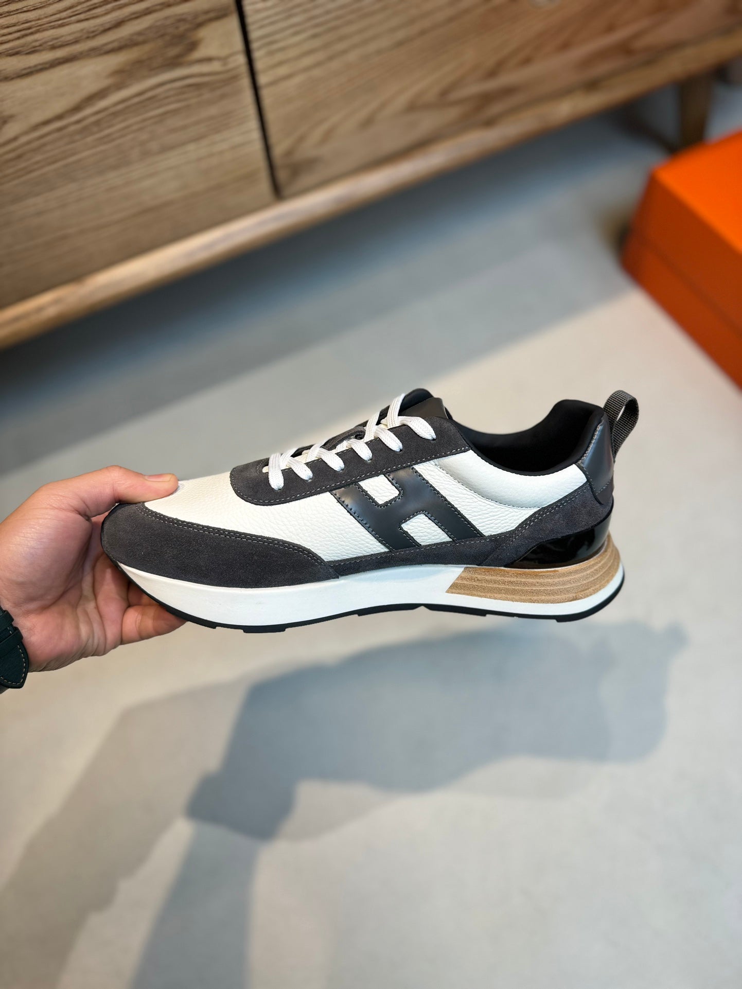 HM INTERACTIVE LACE-UP SNEAKER GRAY AND WHITE CALFSKIN