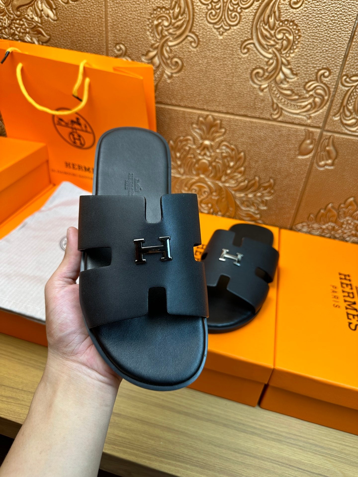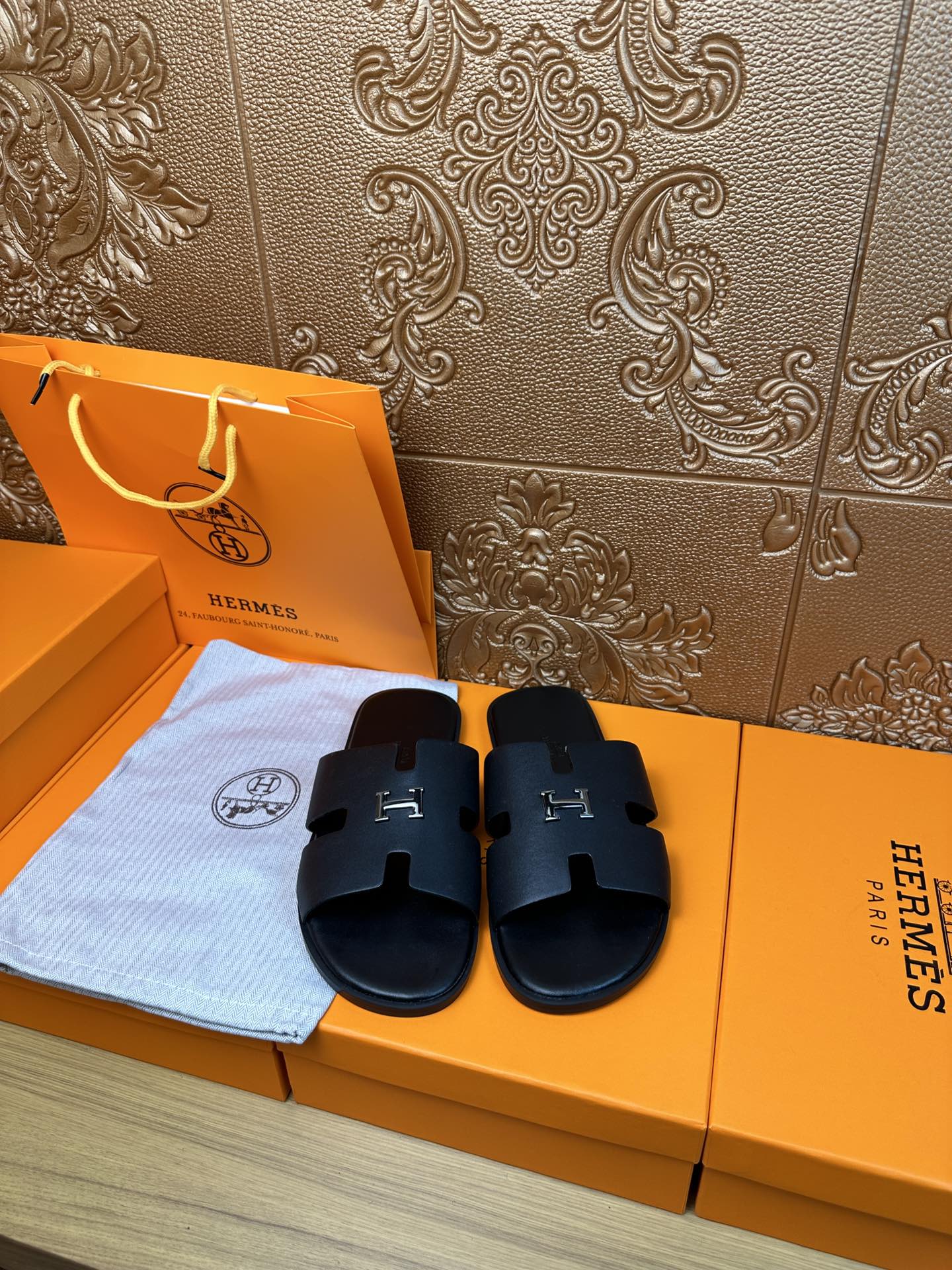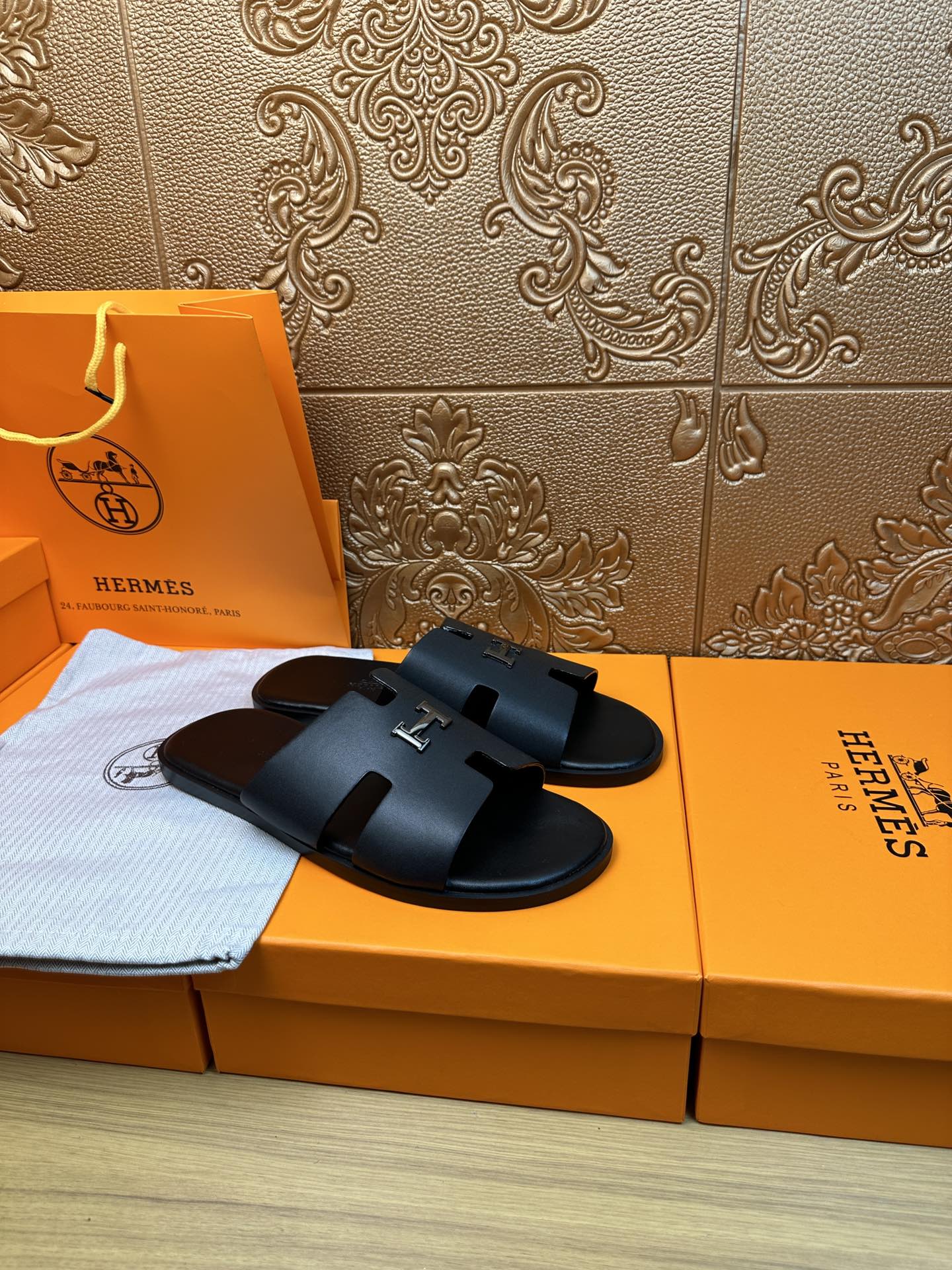 HM IZMIR H-BUCKLE SANDAL BLACK CALFSKIN