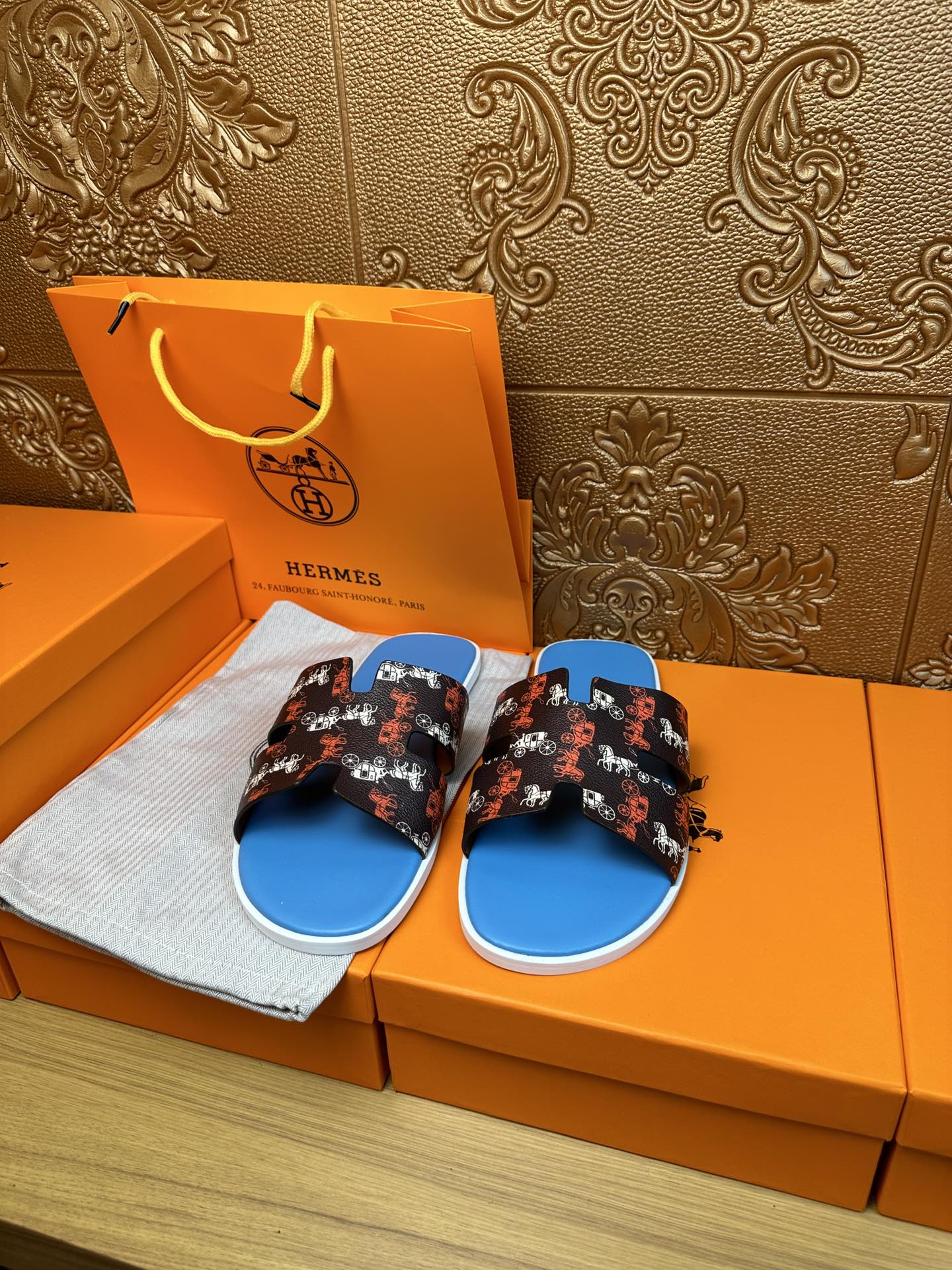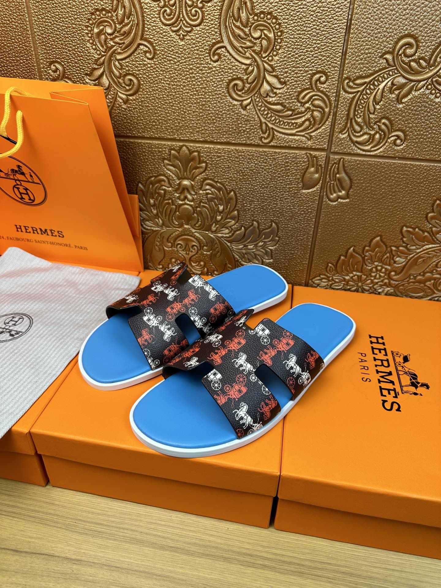 HM IZMIR SANDAL LAPIS AND BLACK CALFSKIN WITH HORSE MOTIF
