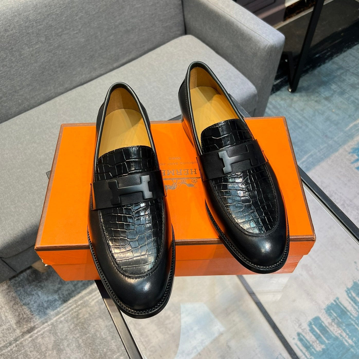 HM PARIS LOAFER BLACK CALFSKIN WITH CROCODILE MOTIF