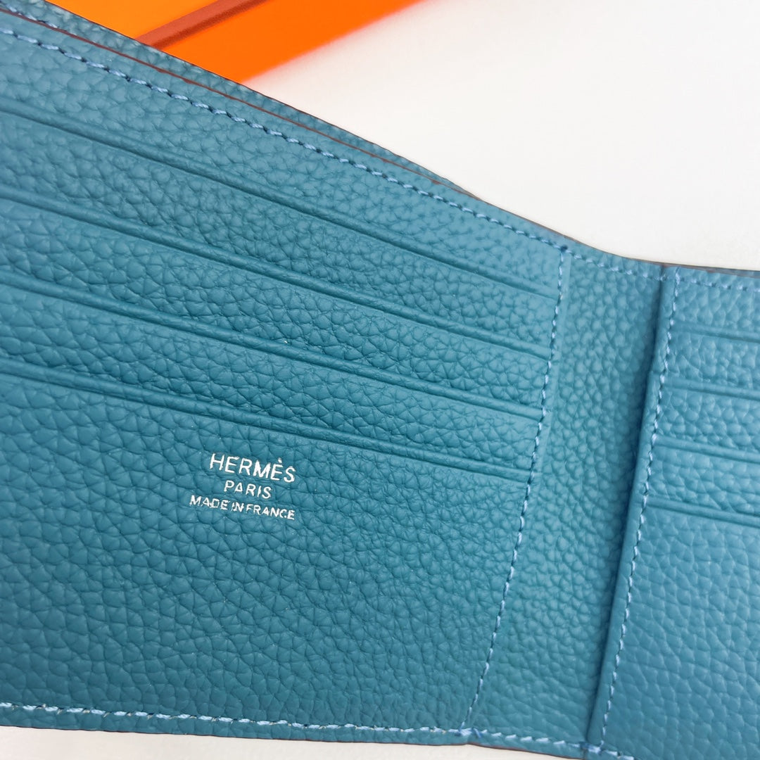 HM SILK’IN MEN’S SHORT WALLET 11.5 CERULEAN GRAINED CALFSKIN