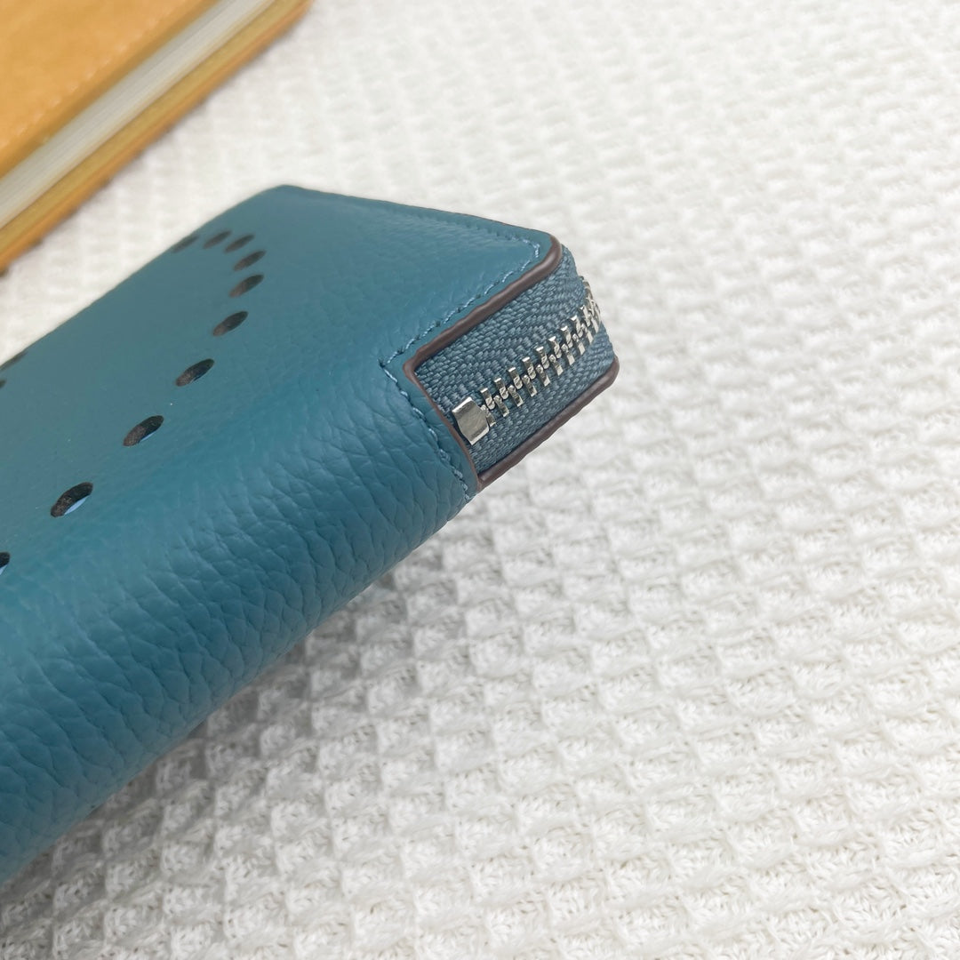 HM SILK'IN HOLED CLASSIC WALLET 20 CERULEAN GRAINED CALFSKIN
