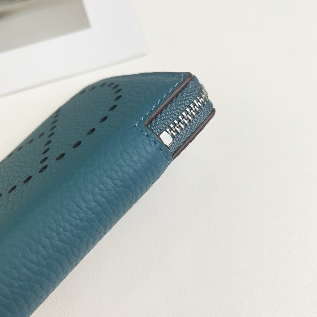 HM SILK'IN HOLED SHORT WALLET 11.5 CERULEAN GRAINED CALFSKIN