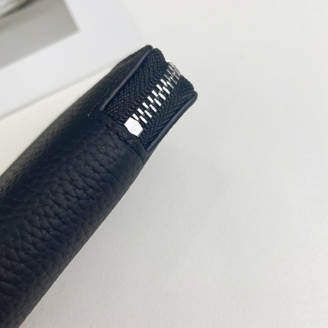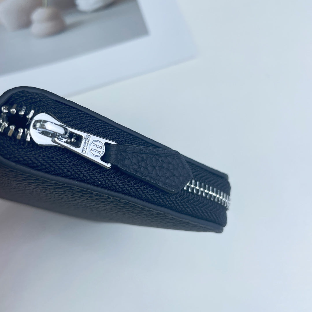 HM SILK'IN SHORT WALLET 11.5 BLACK GRAINED CALFSKIN