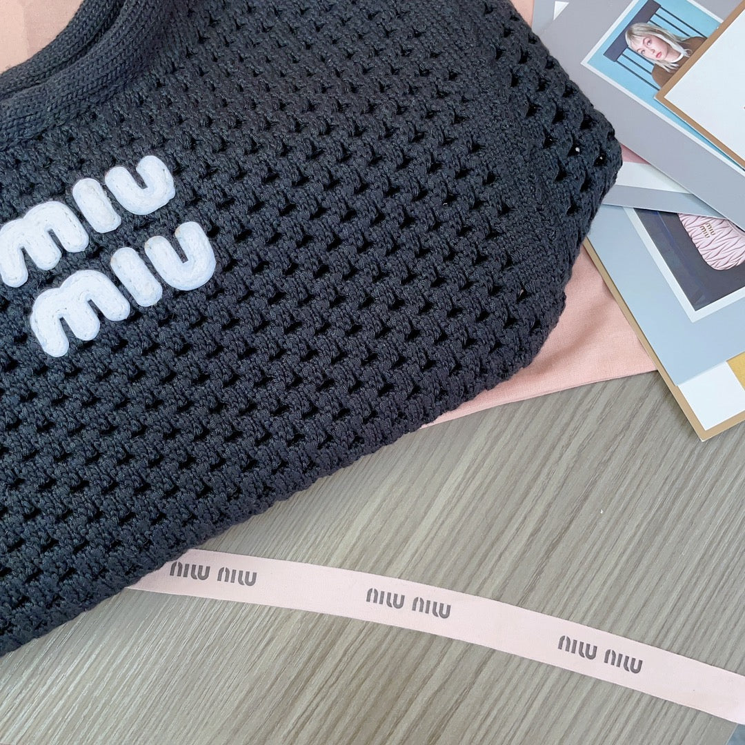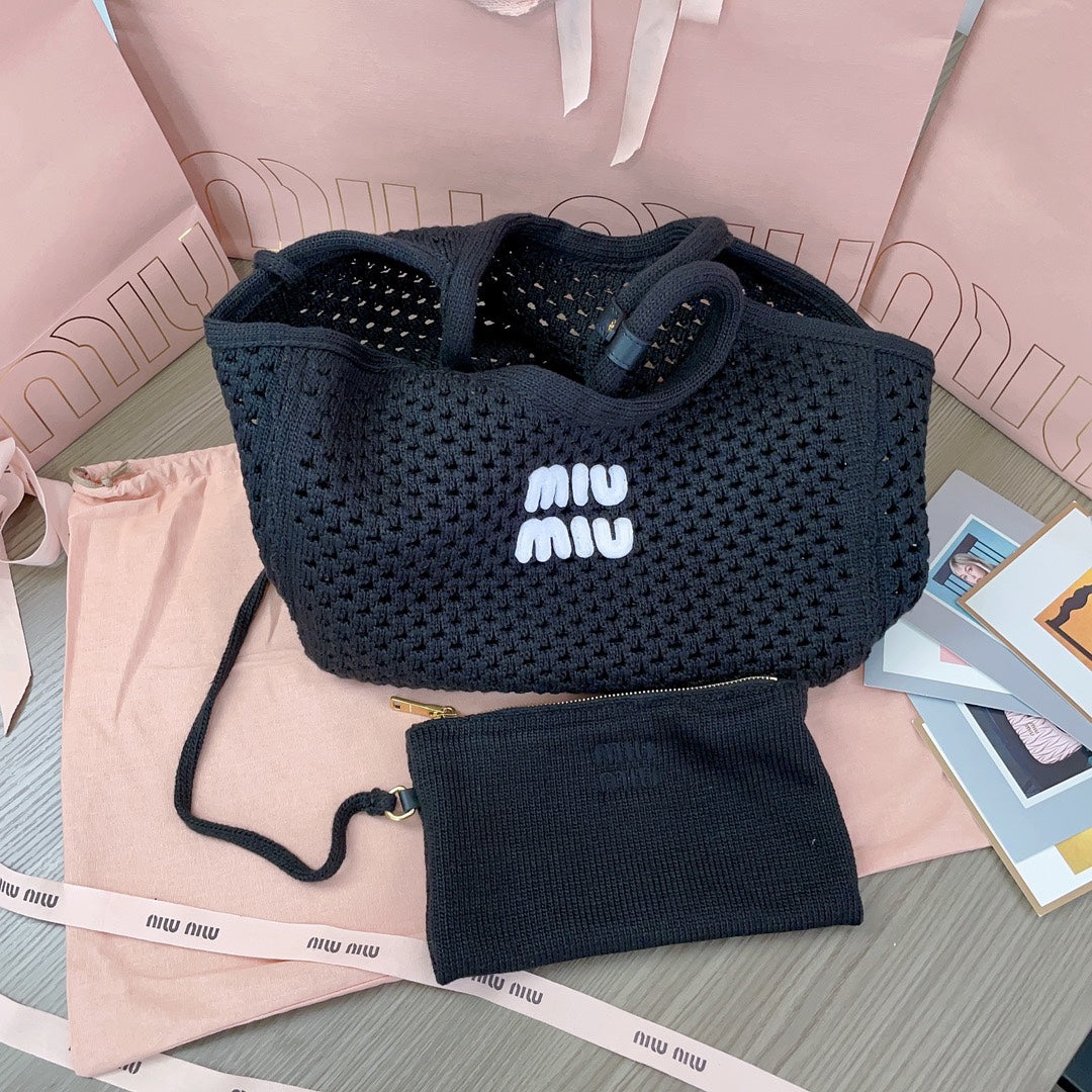 HOLLOW KNITTED SHOPPING BAG 28 IN BLACK MIX WHITE WOOL
