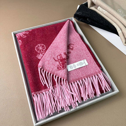 HORSE & CARRIAGE PRINT SCARF 195 CM IN RED PINK 375240