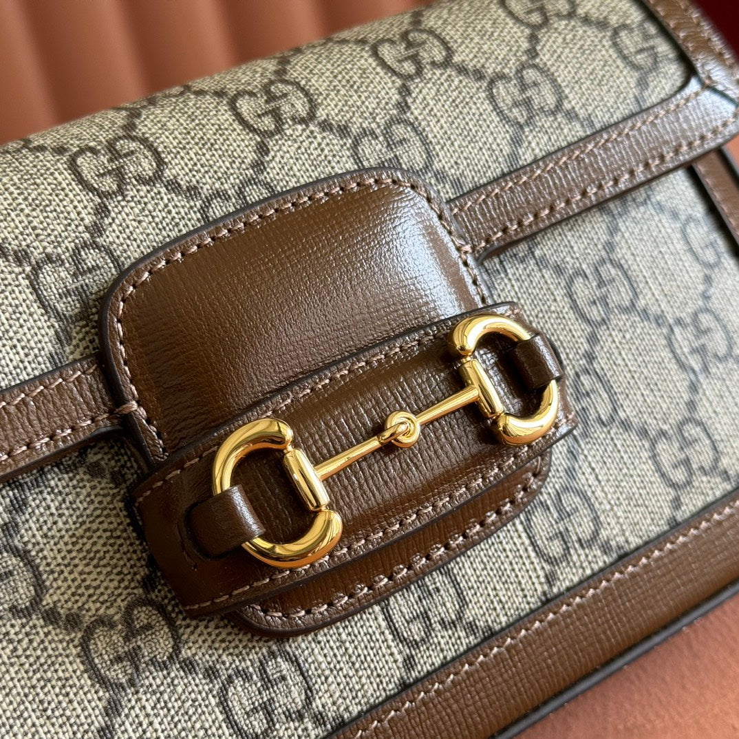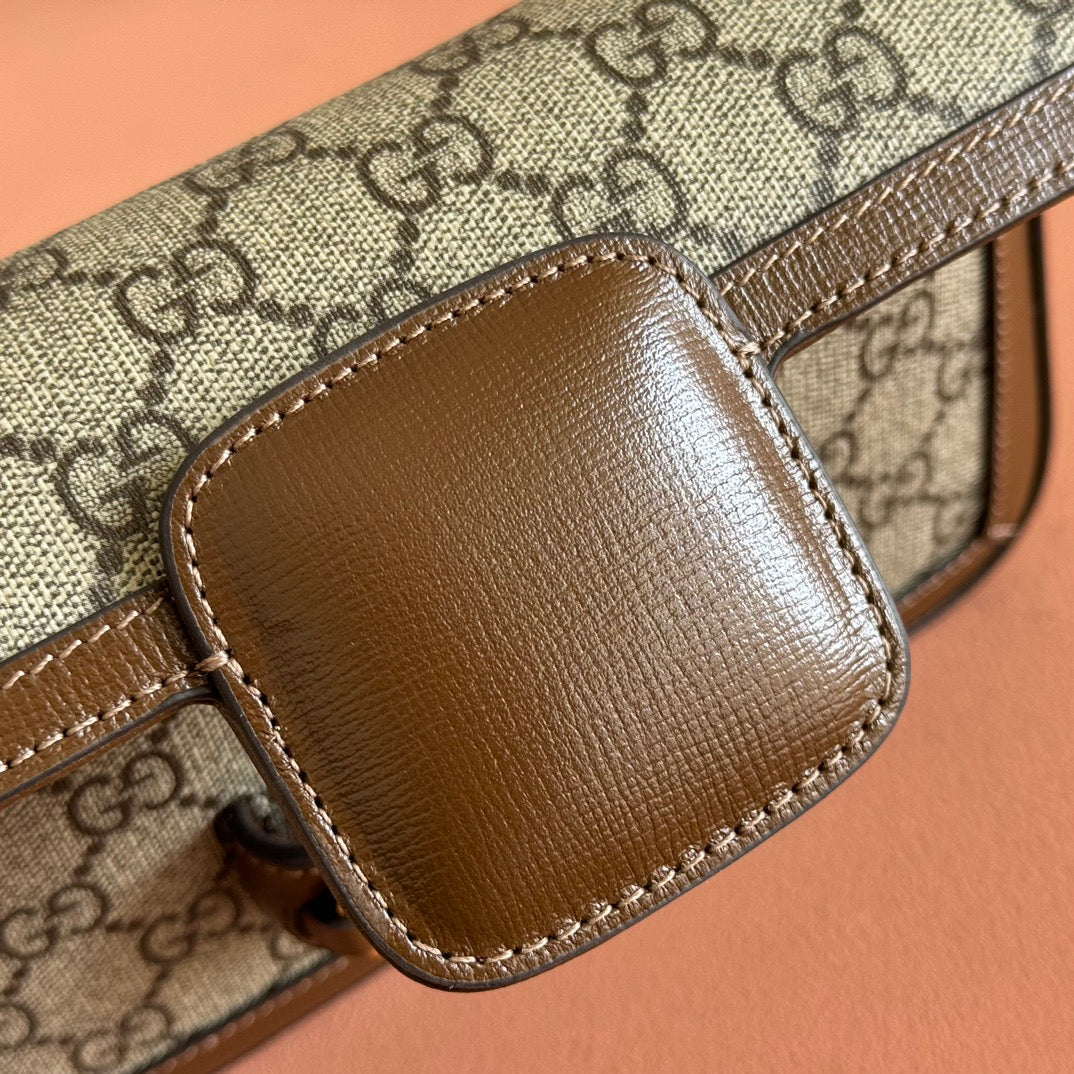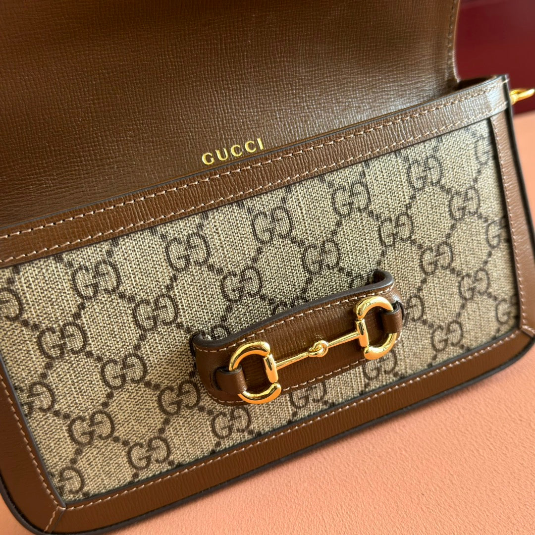 HORSEBIT 1955 SMALL 21.5 IN BEIGE EBONY GG SUPREME BROWN CALFSKIN GOLD HARDWARE